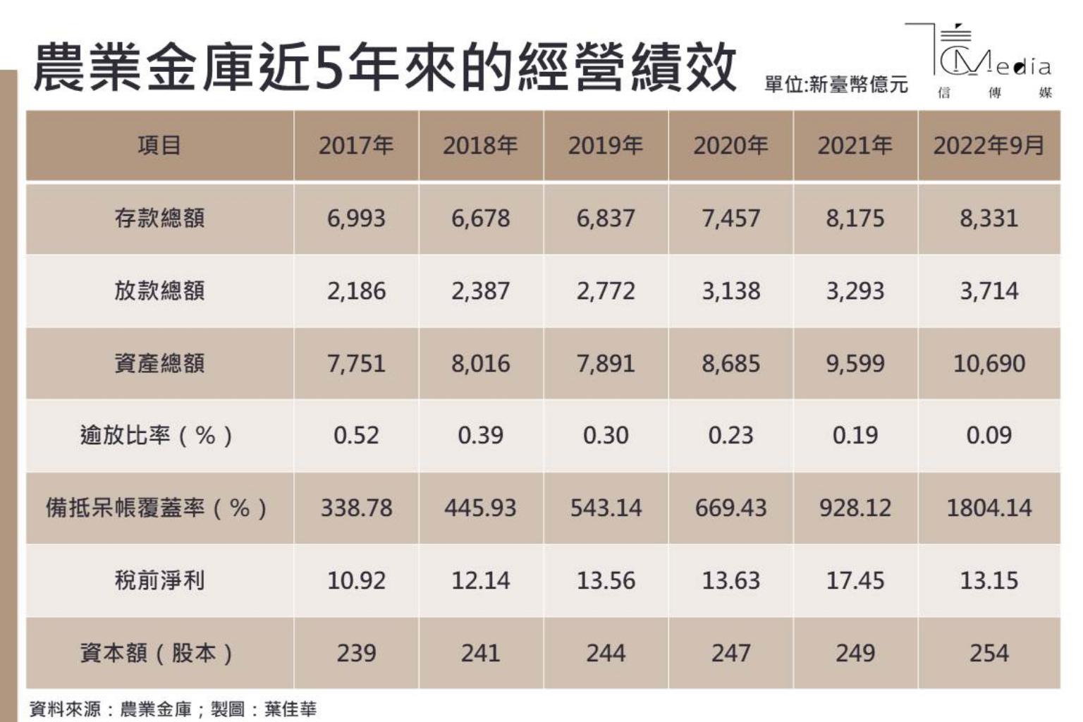 農業金庫近5年的稅前淨利穩定上升,尤其2021年稅前淨利更來到17.45億元,年增率達28%。不過,吳明敏說,獲利並不是農業金庫最重要的任務目標,更重要的是,協助改善農漁會信用部經營品質及配合政策促進農漁村經濟發展。