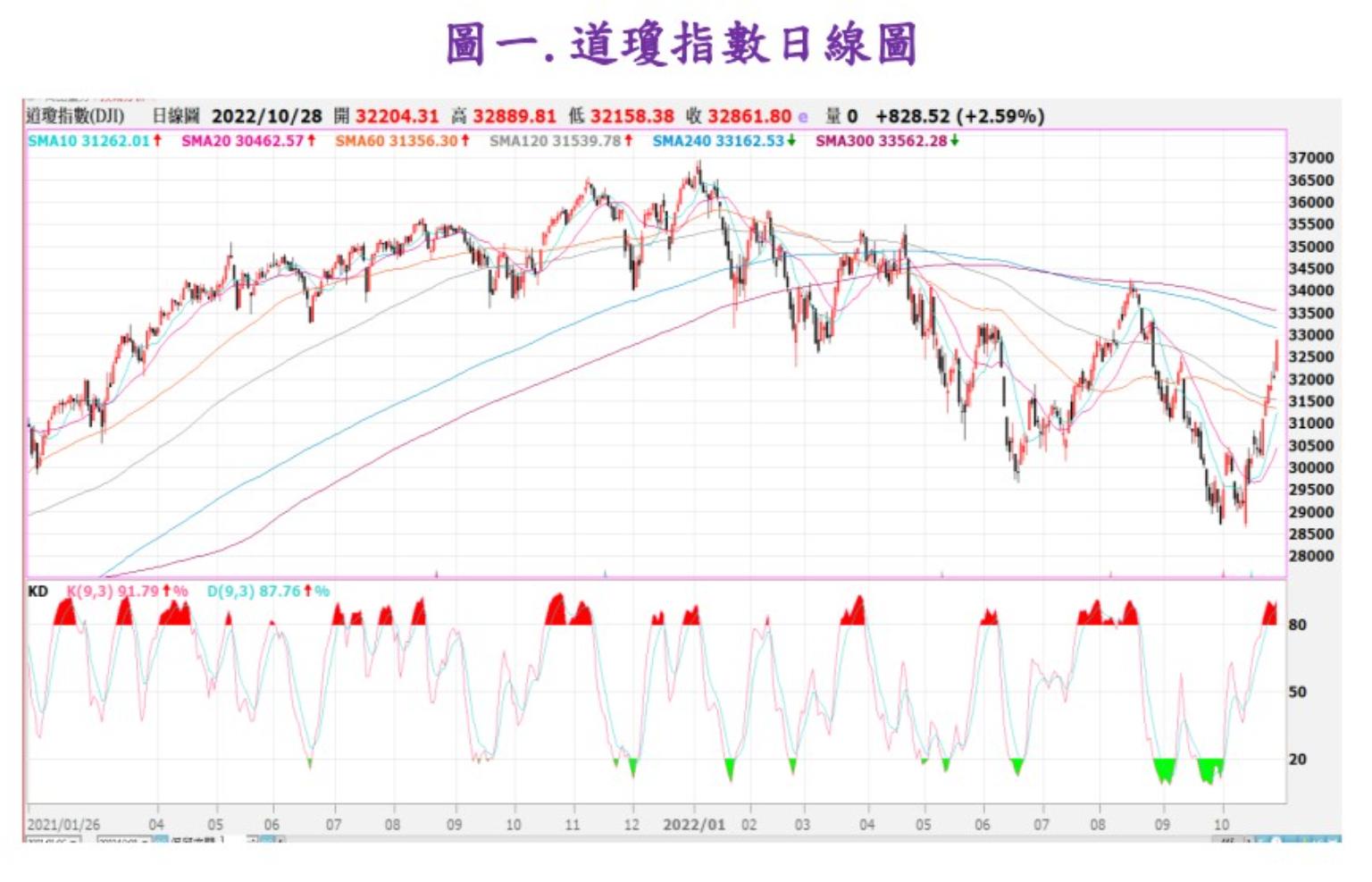 10月13日至今因拜登政府在選前的政策護盤,近期也因好公司公布獲利佳帶動美股四大指數及個股股價跌深出現絕地大反攻,使得10月美股四大指數有打出兩隻腳的情況,激勵股價上漲帶給投資人希望,吸引投資人搶短,美股在10月下旬前仍有可能會出現跌深反彈。