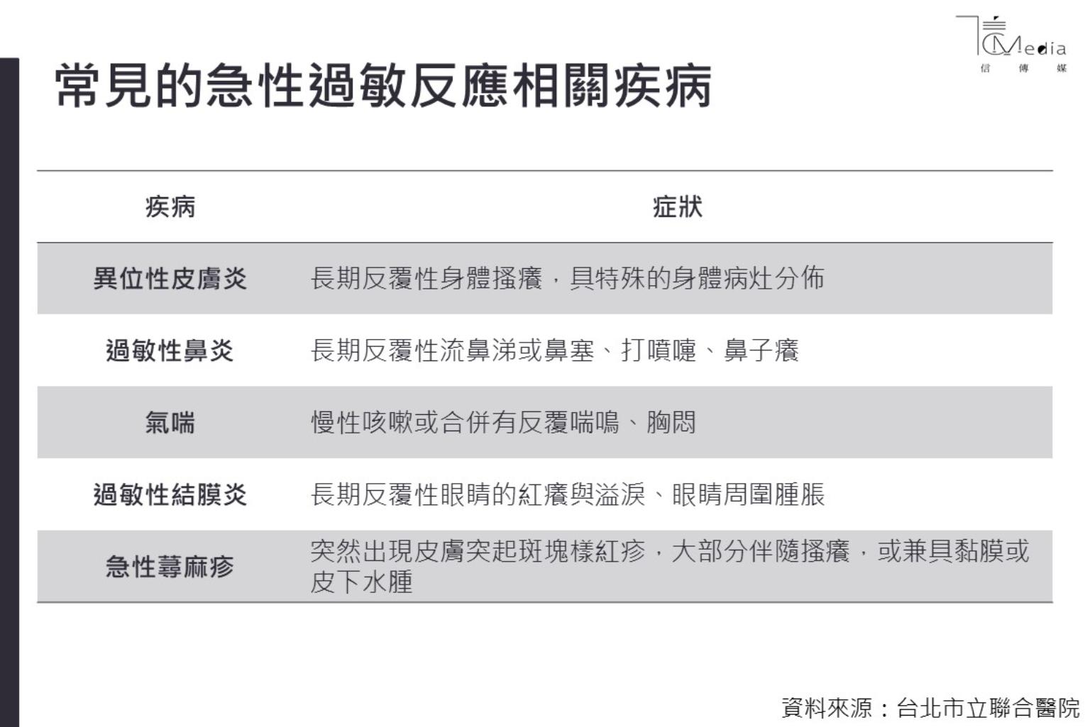 比較重要的是,當出現疑似過敏性疾病的症狀,一定要由醫師排除其他類似症狀的疾病,建立正確診斷,才能合理地進行相關檢測及治療。