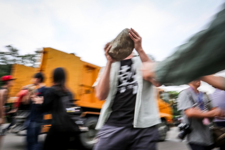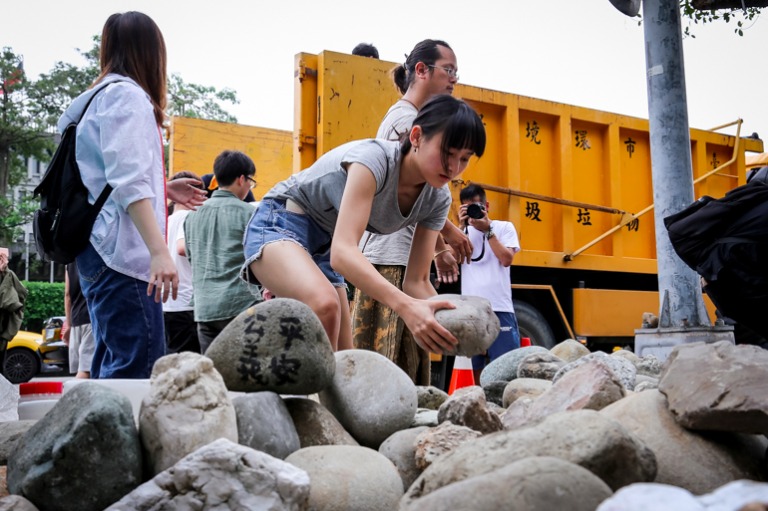 原民團體表示擺放在凱道上的石頭是來自全台各個部落,象徵著土地與文化,不應該被隨意丟棄,於是他們將三百多顆被放置在垃圾車上的石頭一顆一顆的搬下來。