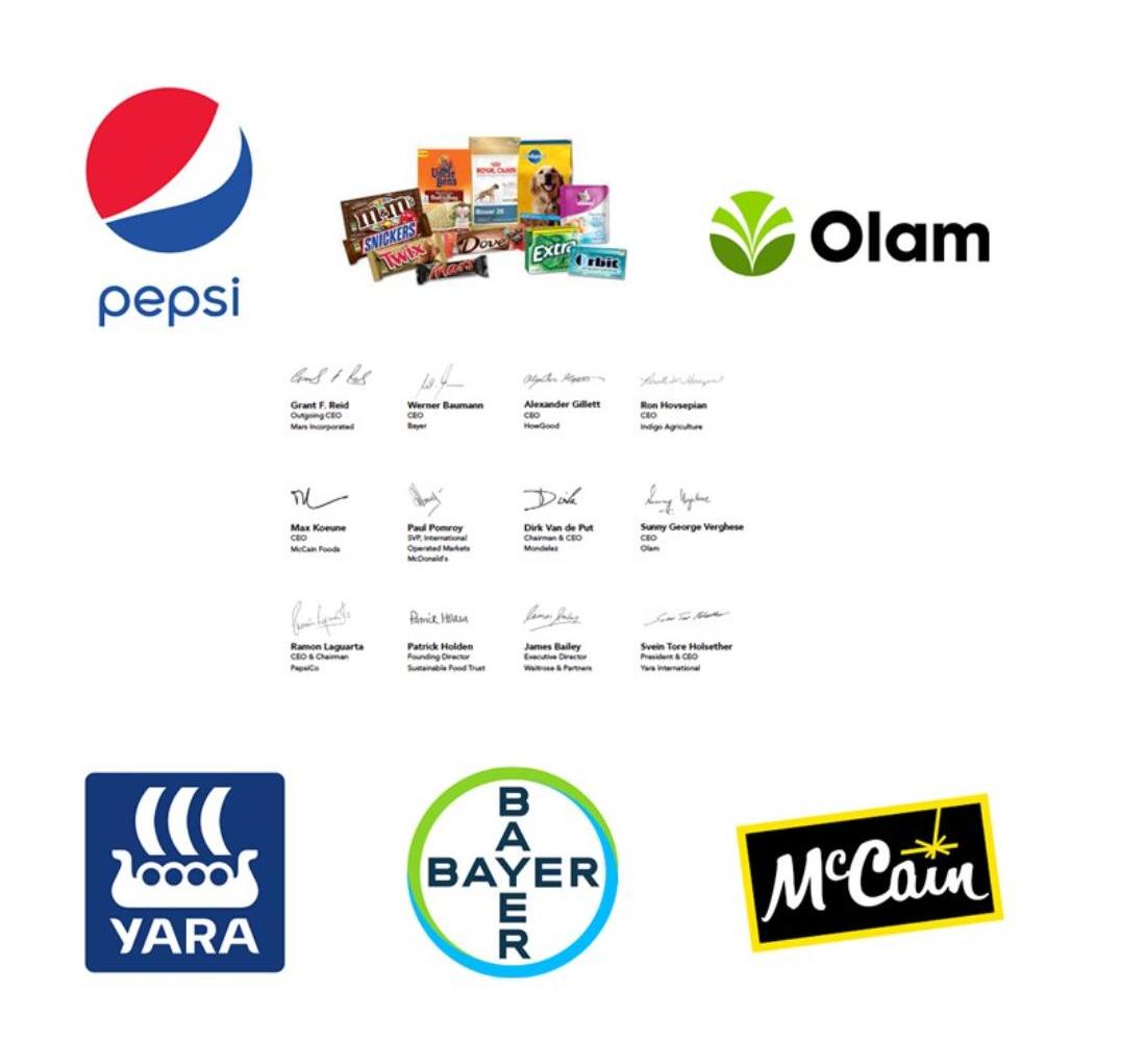 這份報告由拜耳、瑪氏、麥凱恩食品、麥當勞、蒙德萊斯、奧蘭、百事可樂、維特羅斯等食品、農業巨頭簽署。