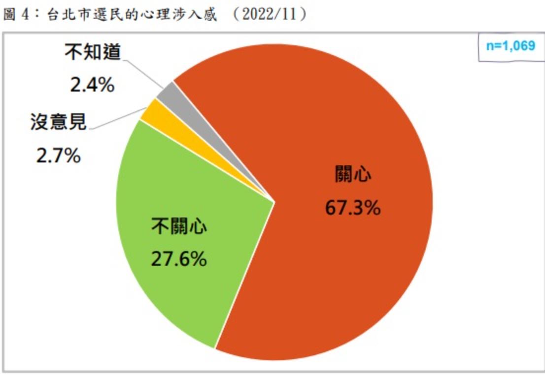 調查也顯示,對於是否關心這次選舉結果,:27.6%非常關心,39.7%還算關心,22%不太關心,5.7%一點也不關心,5.1%沒意見,在電視辯論後,選情已有白熱化跡象。