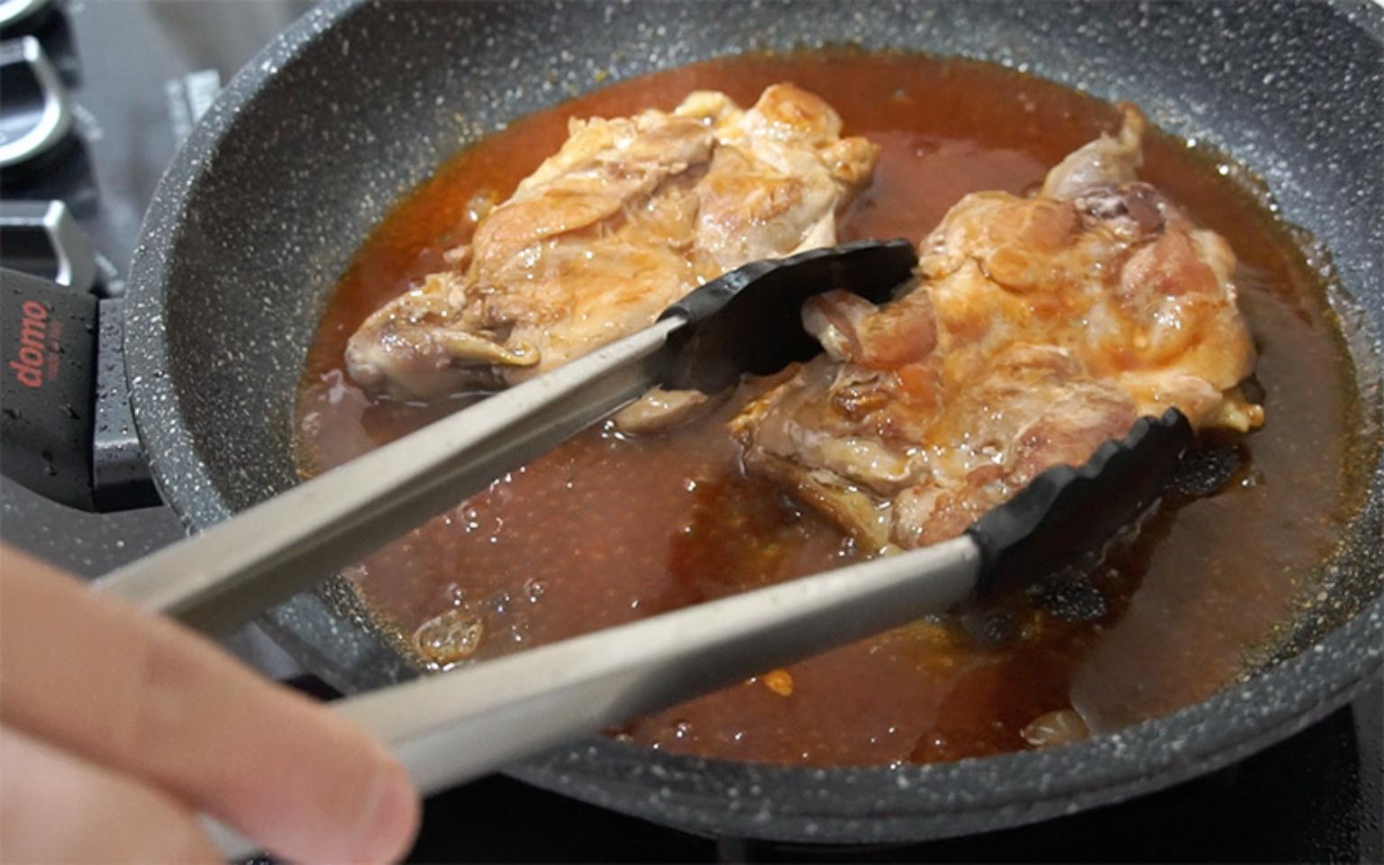 雞腿排調味後即可起鍋備用,剩下的醬汁繼續收汁收濃,當作上菜的醬汁。
