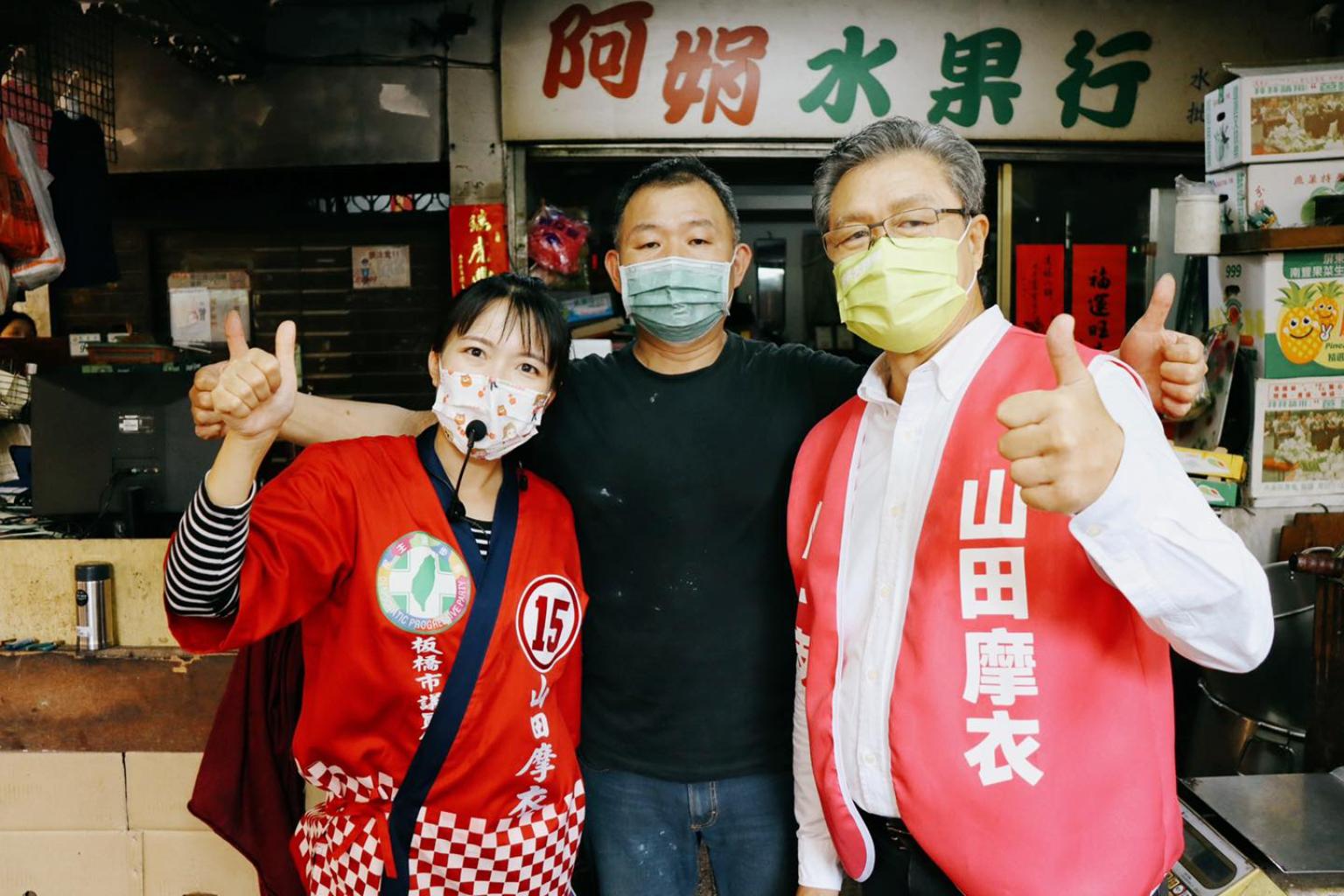 為了在冷颼颼的選情中凸顯自己,山田摩衣每天狂掃街,與母雞、新北市長候選人林佳龍黏緊緊、搶曝光,還找來金鐘歌王楊烈合體掃街。2001年山田摩衣演出「流氓教授」女主角小時候,楊烈就是飾演他的父親,睽違20年「螢幕父女」合體掃街,受到許多婆婆媽媽歡迎,黃淑君則找副總統賴清德錄音推薦,各出奇招。