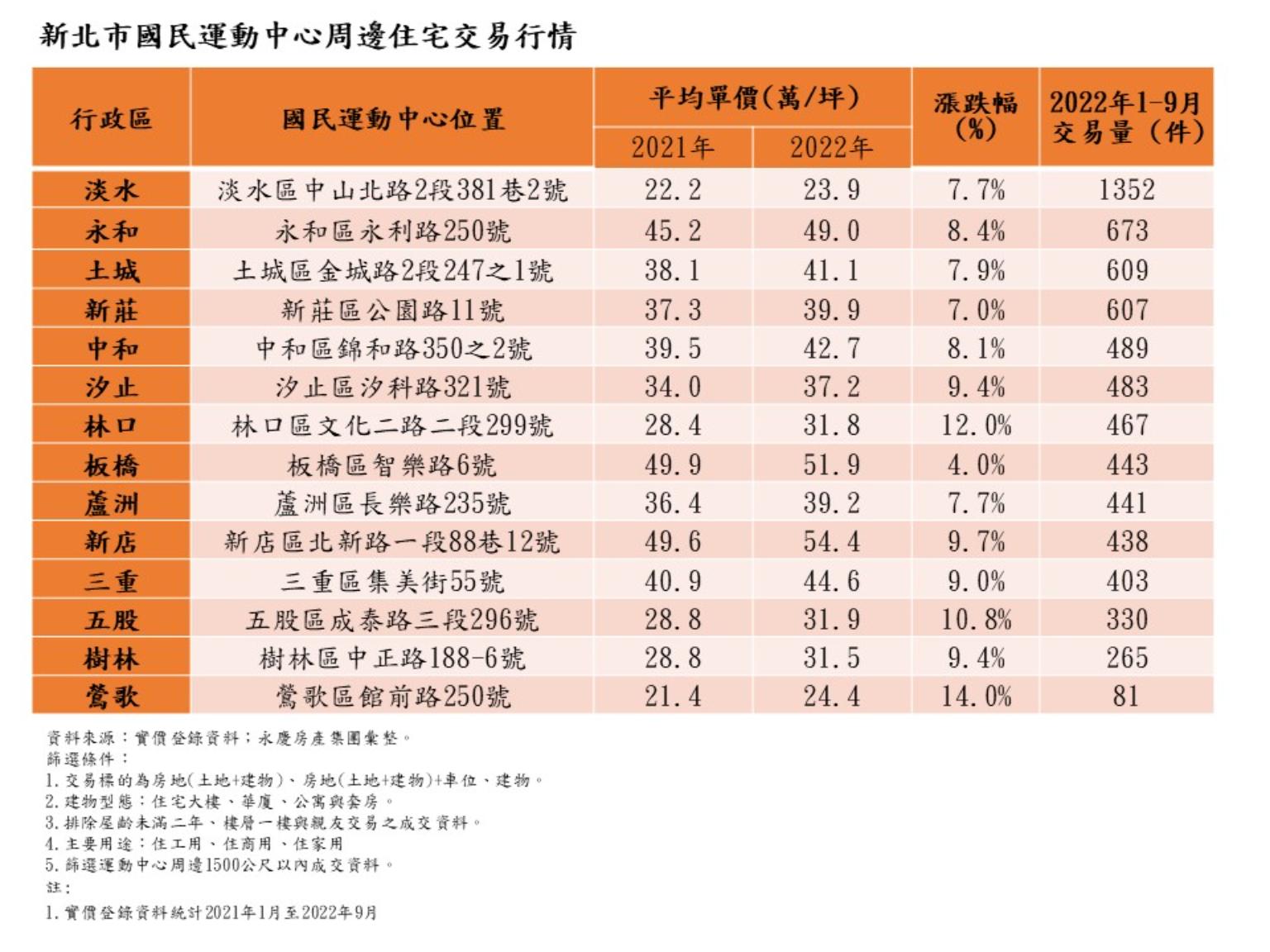 新北市淡水運動中心周邊交易破千件!鶯歌、五股、林口房價漲幅明顯
