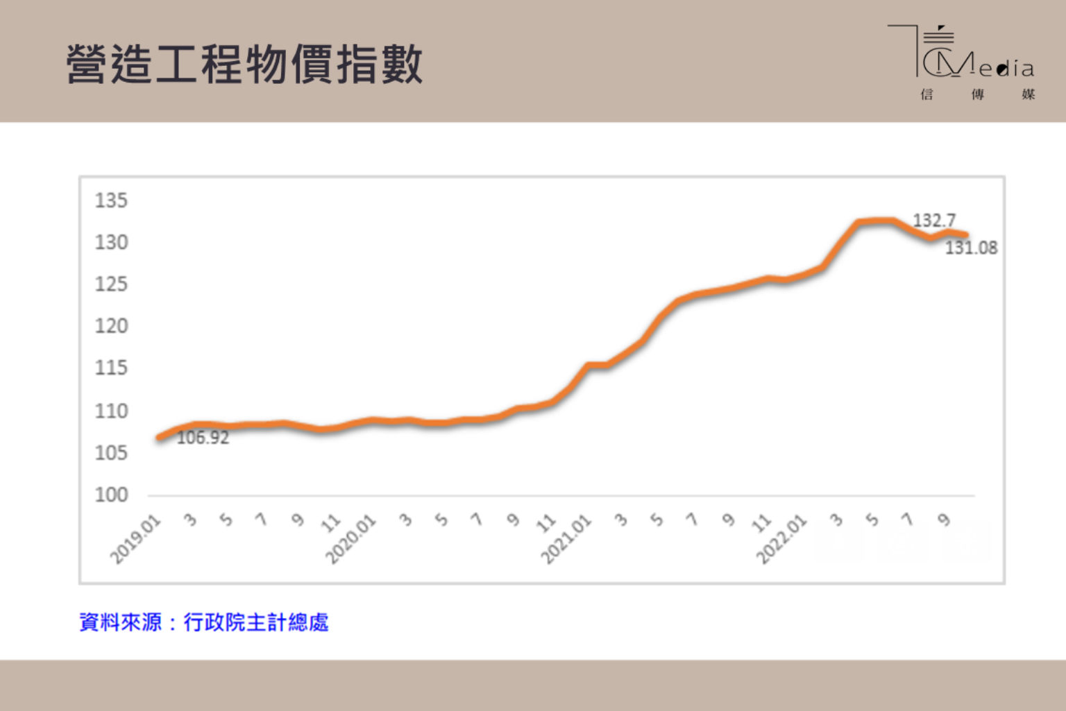 根據主計總處的營造工程物價指數資料顯示,今年10月營造工程總指數為131.08,較上月微減0.33個百分點,過去一段時間不斷上揚的工程造價,已經連續5個月未再創新高,過去持續上揚的造價成本,恐怕再難成為推升房價的理由。
