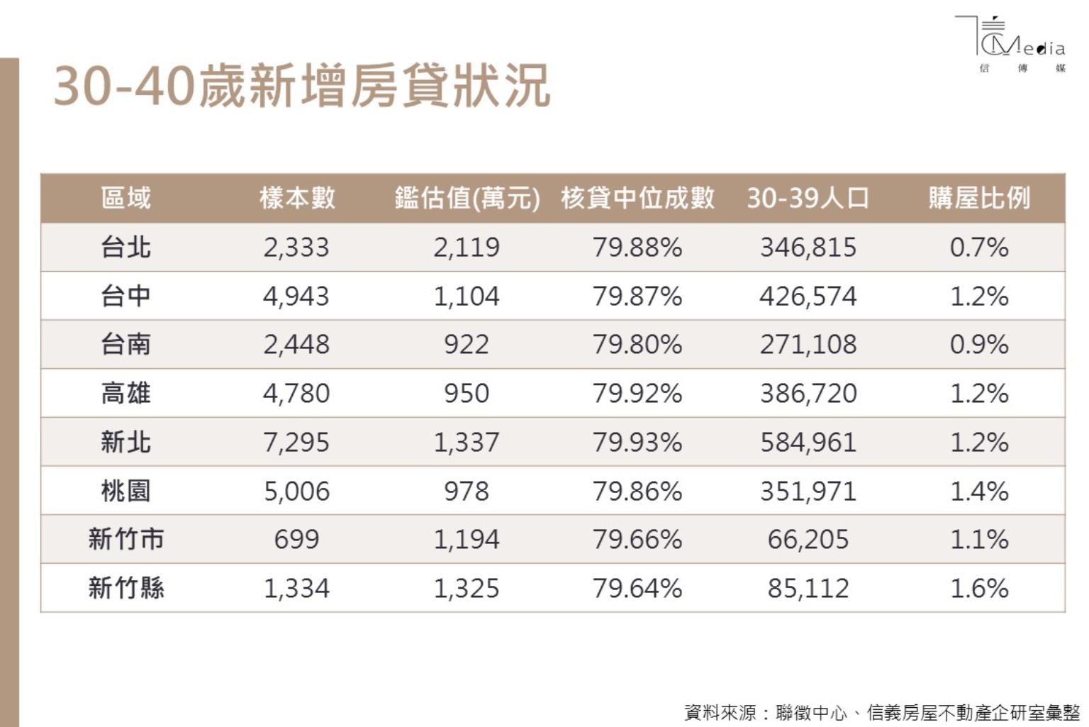 隨國人晚婚與房價高漲,30而立的難度越來越高,統計六都加上新竹地區的30世代族群,今年上半年主要都會區,購屋狀況最積極的是新竹縣,根據聯徵中心資料顯示,今年上半年新竹縣30~40歲世代,平均每百人就新增1.6人購屋成為房貸一族,主要原因可能新竹縣的購屋人許多都是外來的年輕族群,因為工作關係選擇在新竹縣的竹北等地區落地生根。