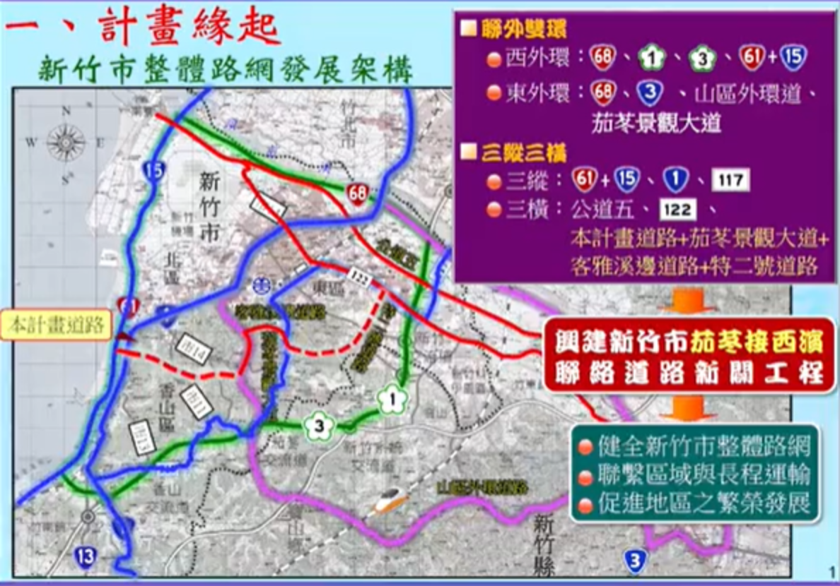 民眾黨新竹市長候選人高虹安今日率市議員共同踢爆,中央本規畫和補助的R1道路「「新竹市茄苳接西濱聯絡道路」,原本只要環評補件即可,卻被前市長林智堅,和時任交通處長、民進黨候選人沈慧虹所推翻。
