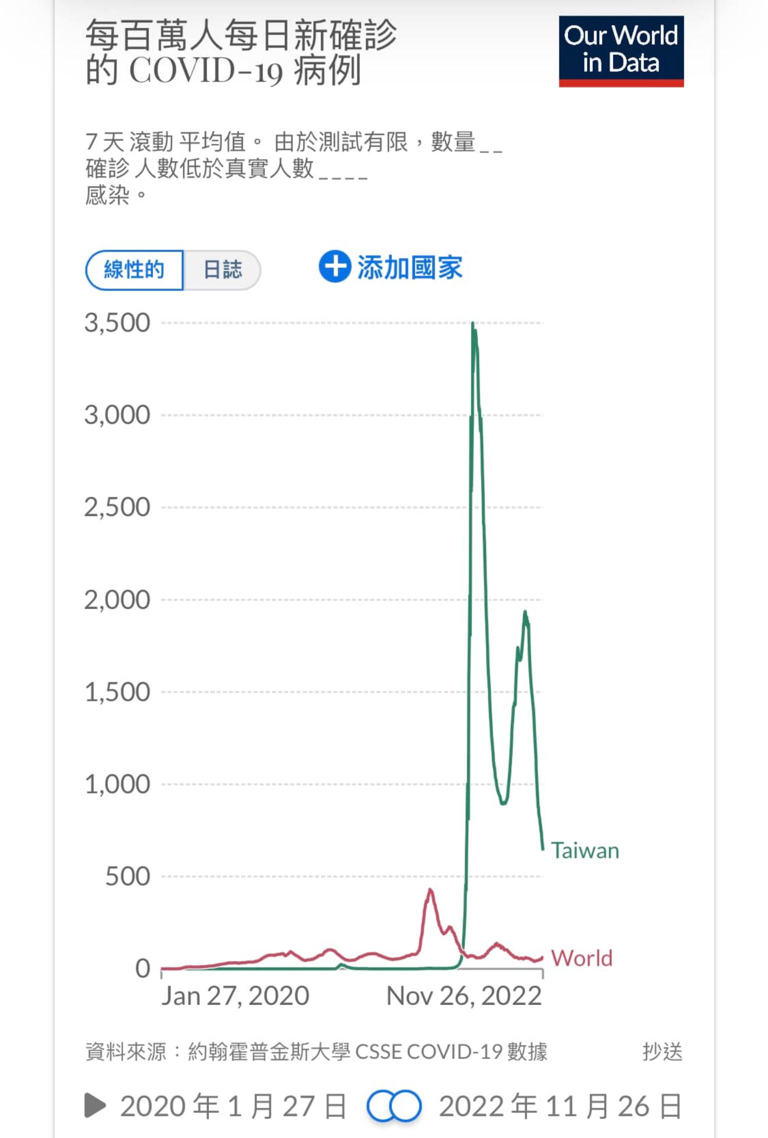 (3)2022年4月下旬至今則遠高於世界平均,而且台灣的高確診率發生在所有年齡層,特別是小於50歲國民的確診率高於全國平均。