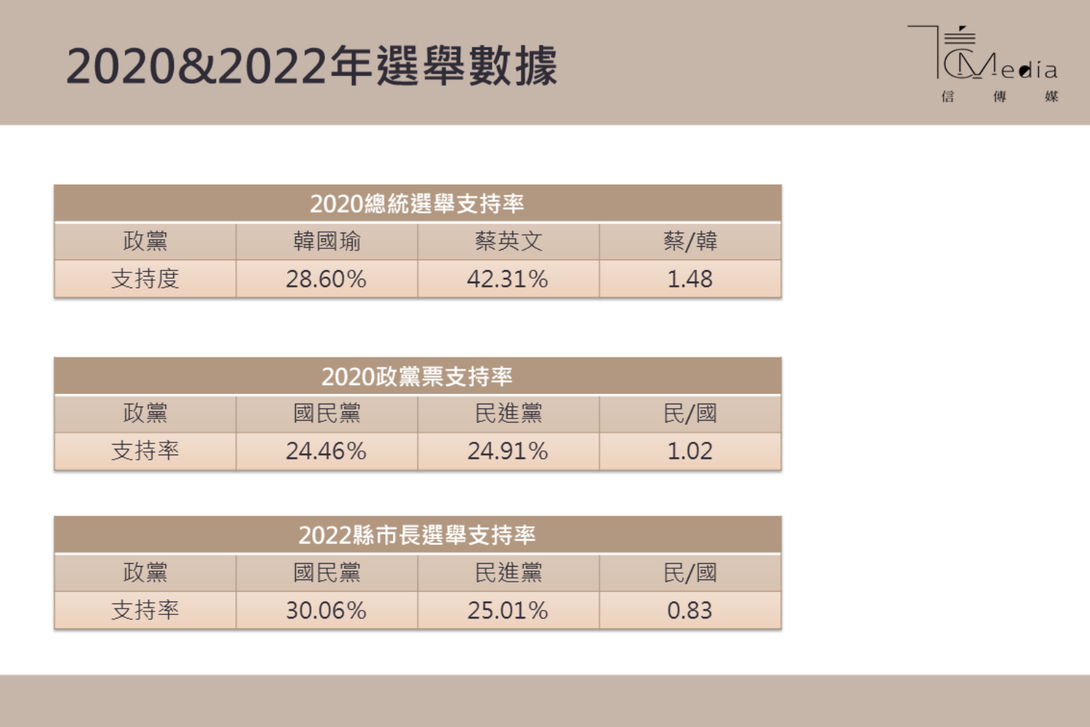 若要討論國民黨和民進黨的全國基本盤,最客觀的數字就是2020年的政黨票支持率:國民黨24.46%,民進黨24.91%。