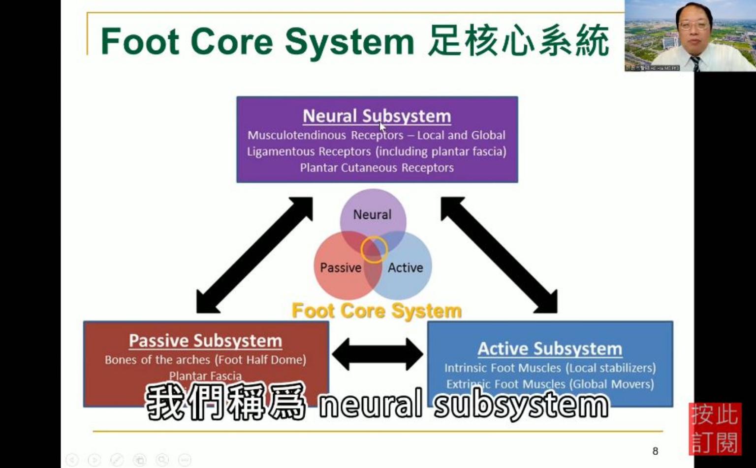 他進一步解釋,人體的足核心系統是由3部分構成: