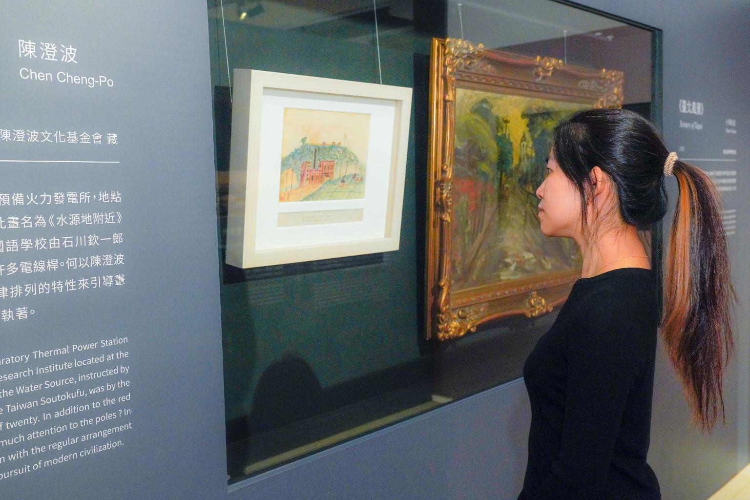 台電說明,特展序曲中,台灣近代重量級畫家陳澄波1915年創作作品《水源地附近》透過電線桿街景展現當時電力已進入生活的樣貌;畫中有煙囪的紅色建築即為同年完工的臺北預備火力發電所,也是臺北市區首座具規模的發電廠(裝置容量950瓩),現為台電綜合研究所。主題二「電的供給與需求」亦首次對外公開1929年由台電前身、臺灣電力株式會社製作的「日月潭水力電氣工事計畫圖」以及1937年的「日月潭發電廠相關設施分佈圖」,一窺日月潭發展歷史。