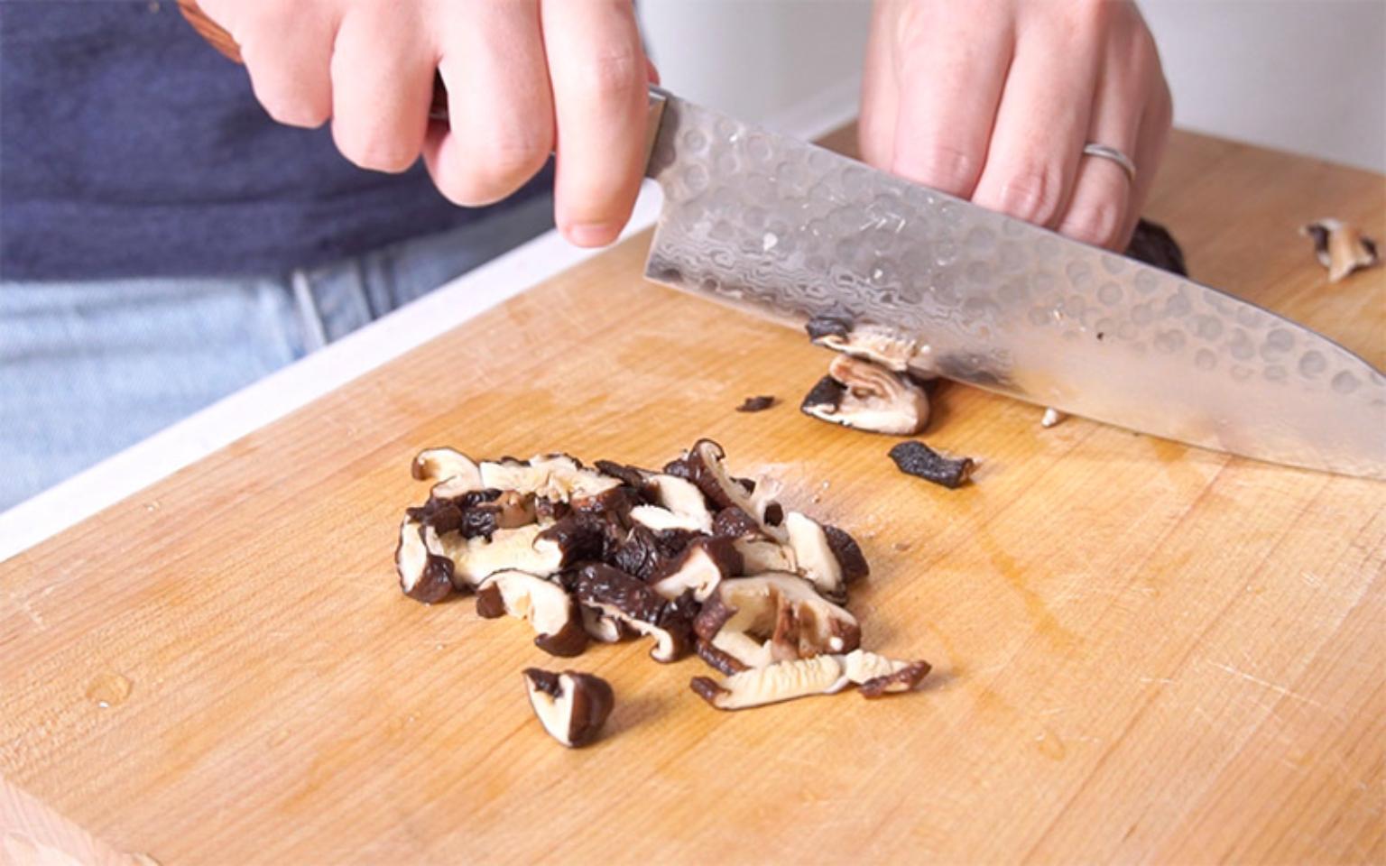 乾香菇泡水回軟,而且有香菇味的香菇水也可以留著後面使用。