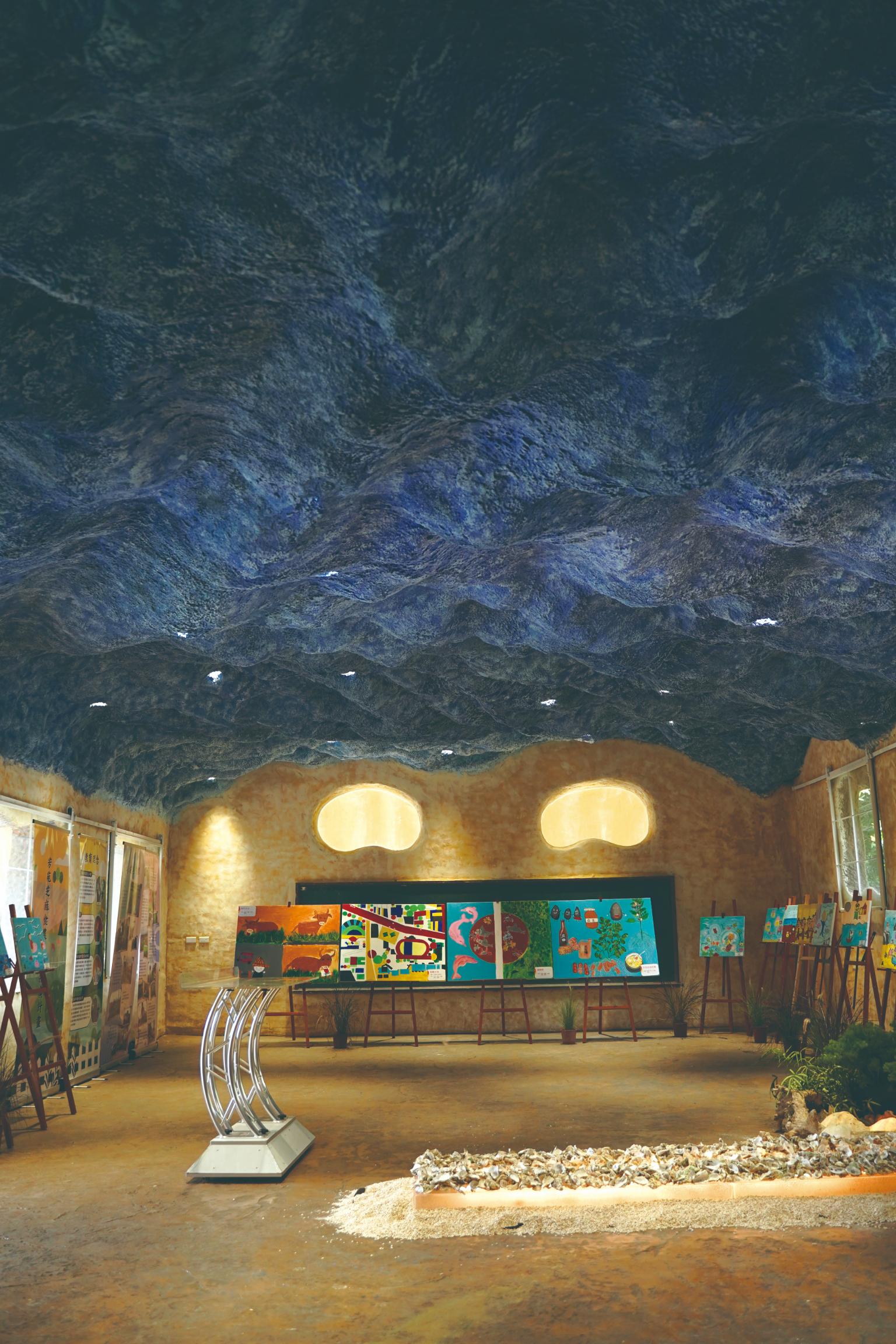 文化創生力即以海牛文化為中心,以「走讀海牛知芳苑」為核心,帶領孩子們追尋家鄉歷史及文化,了解更多在地故事,將文化向下扎根、向上開枝散葉。跨域創意力則以生態課程當中,撿拾回來的文蛤、蚵殼加以彩繪、加工,孩子們自行規劃構圖,加上老師的協助,在校園內製作出一幅入海前沿路能夠發現的生態分布圖,記錄著當地特色物種的潮間帶地圖,雖是孩子們的童趣畫風卻扎扎實實呈現了對於在地的深刻觀察及研究,令人驚嘆。