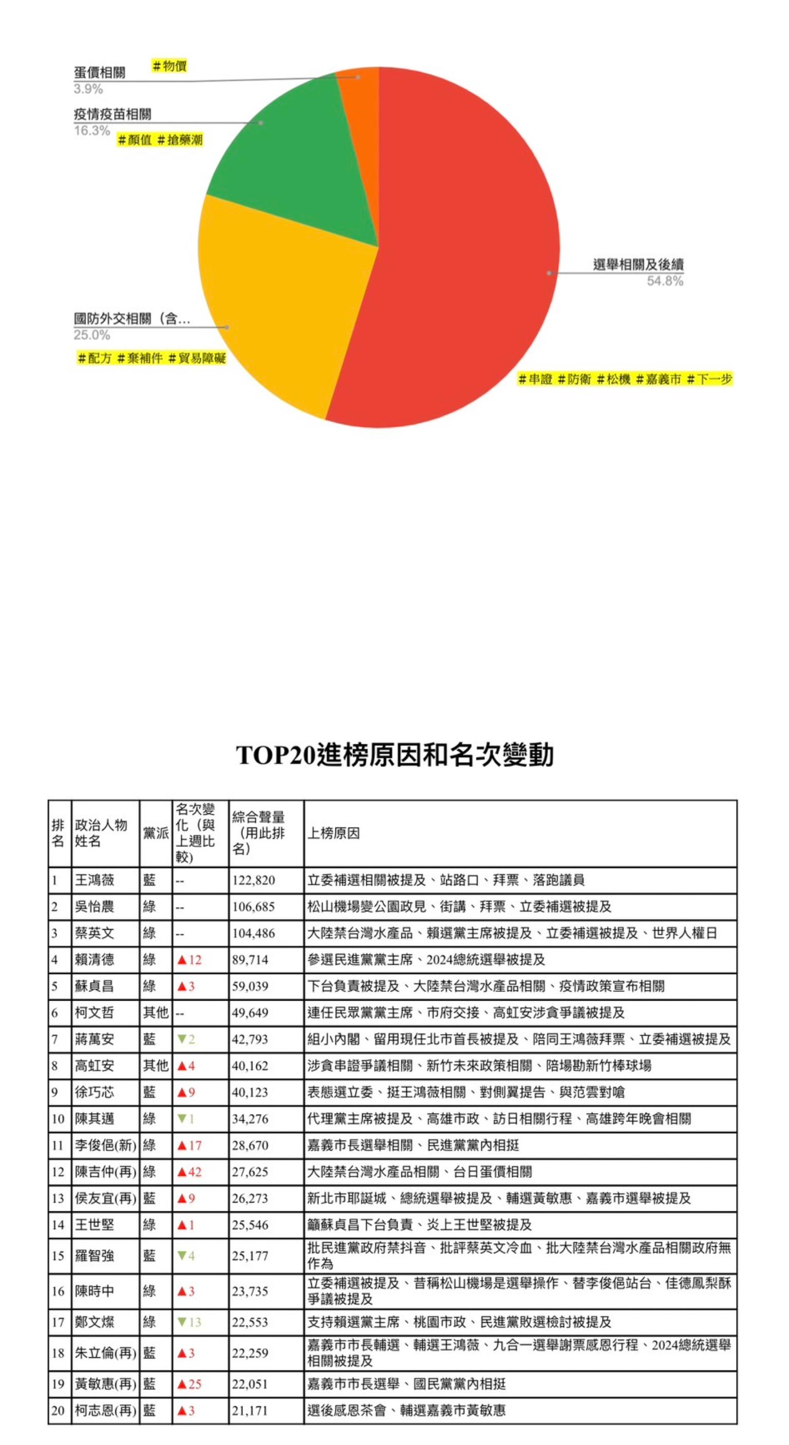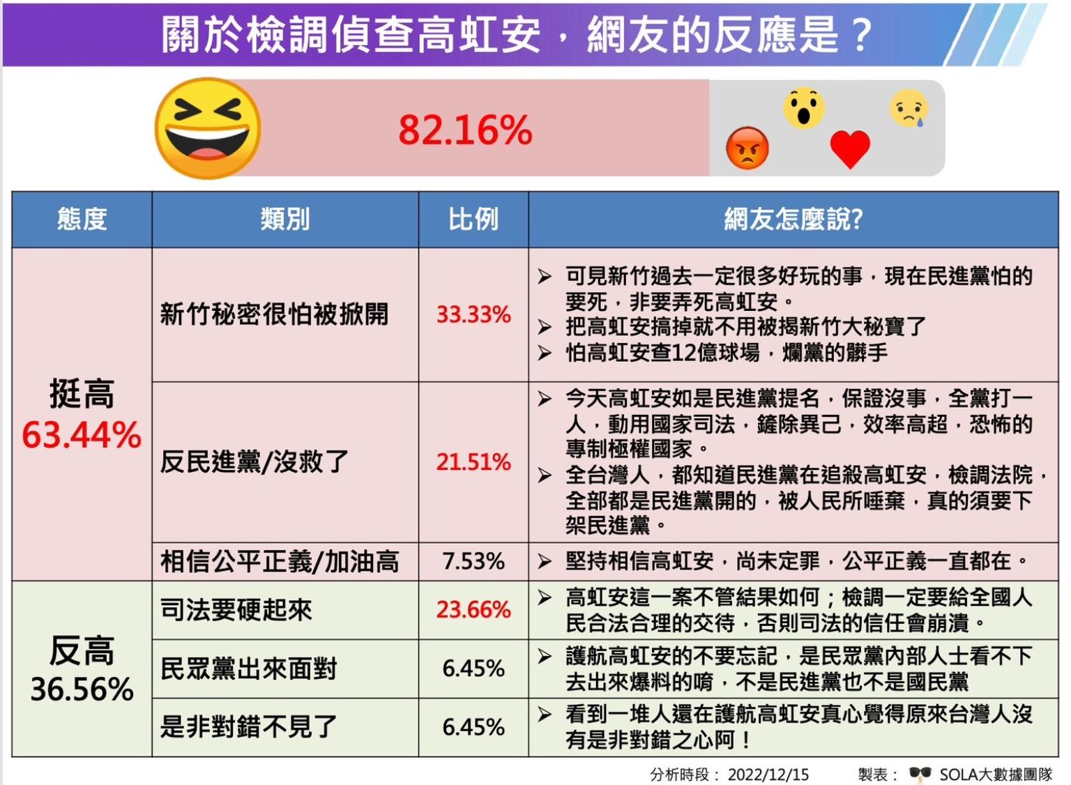 由於此一司法案件成為全國矚目焦點,高虹安一舉上衝到全國政治人物聲量第8名,比上周快速提升4名,緊追在台北市長當選人蔣萬安之後,同時網友挺高的比例極高,達63.44%。