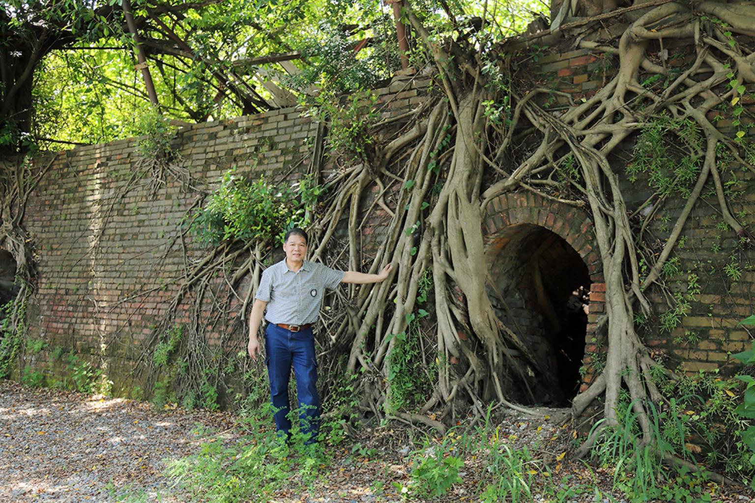 高聳大煙囪直伸天際,超過70年歷史的老磚窯隱藏在茂密的綠林之間,老榕樹氣根盤踞窯體,取代了坍塌的窯頂結構,綠意、古蹟、紅磚窯,彷彿是動畫中被遺忘的天空之城,在神秘氛圍中蘊藏旺盛生機。