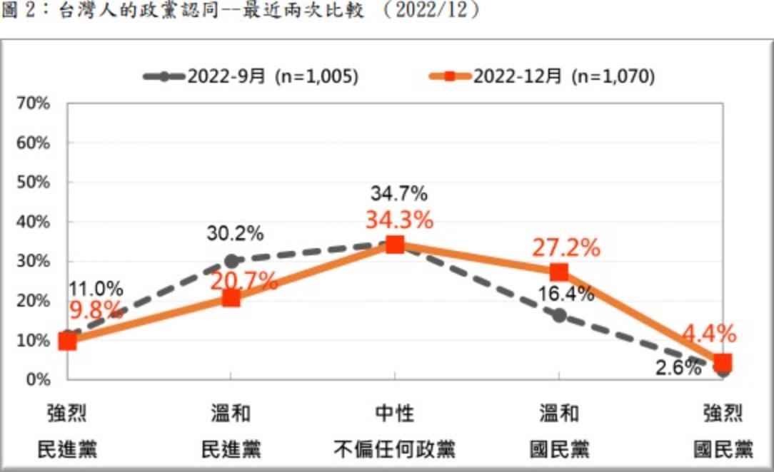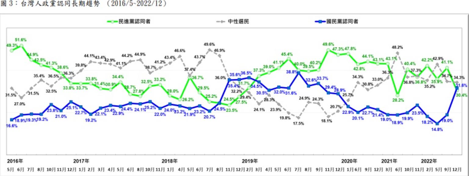 綠政黨認同度倒退10年,衝擊2024總統與立委大選