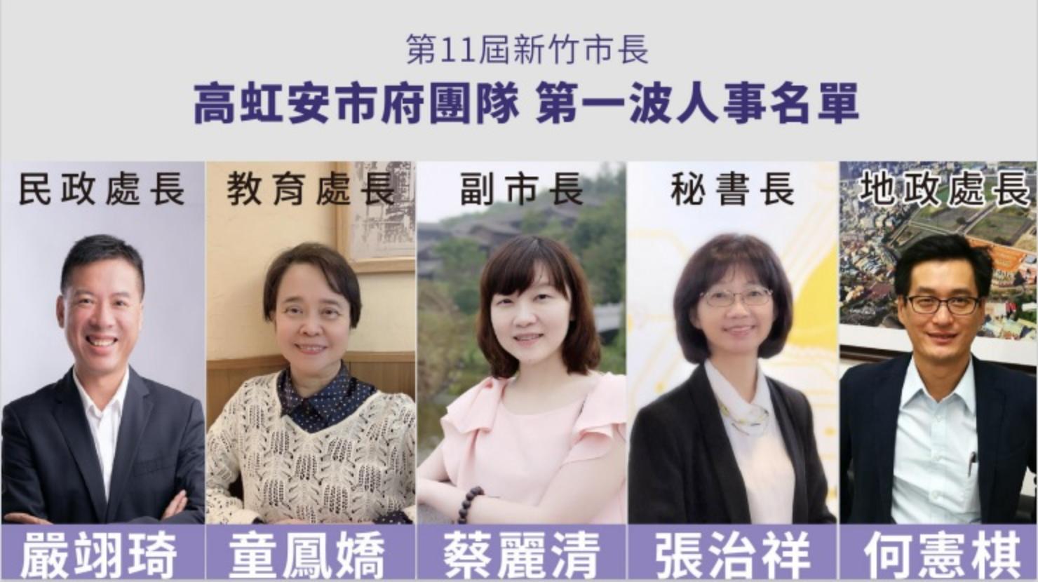 這波新竹市府人事,除了蔡麗清外,高虹安也向台北市長柯文哲、台中市長盧秀燕「借將」。