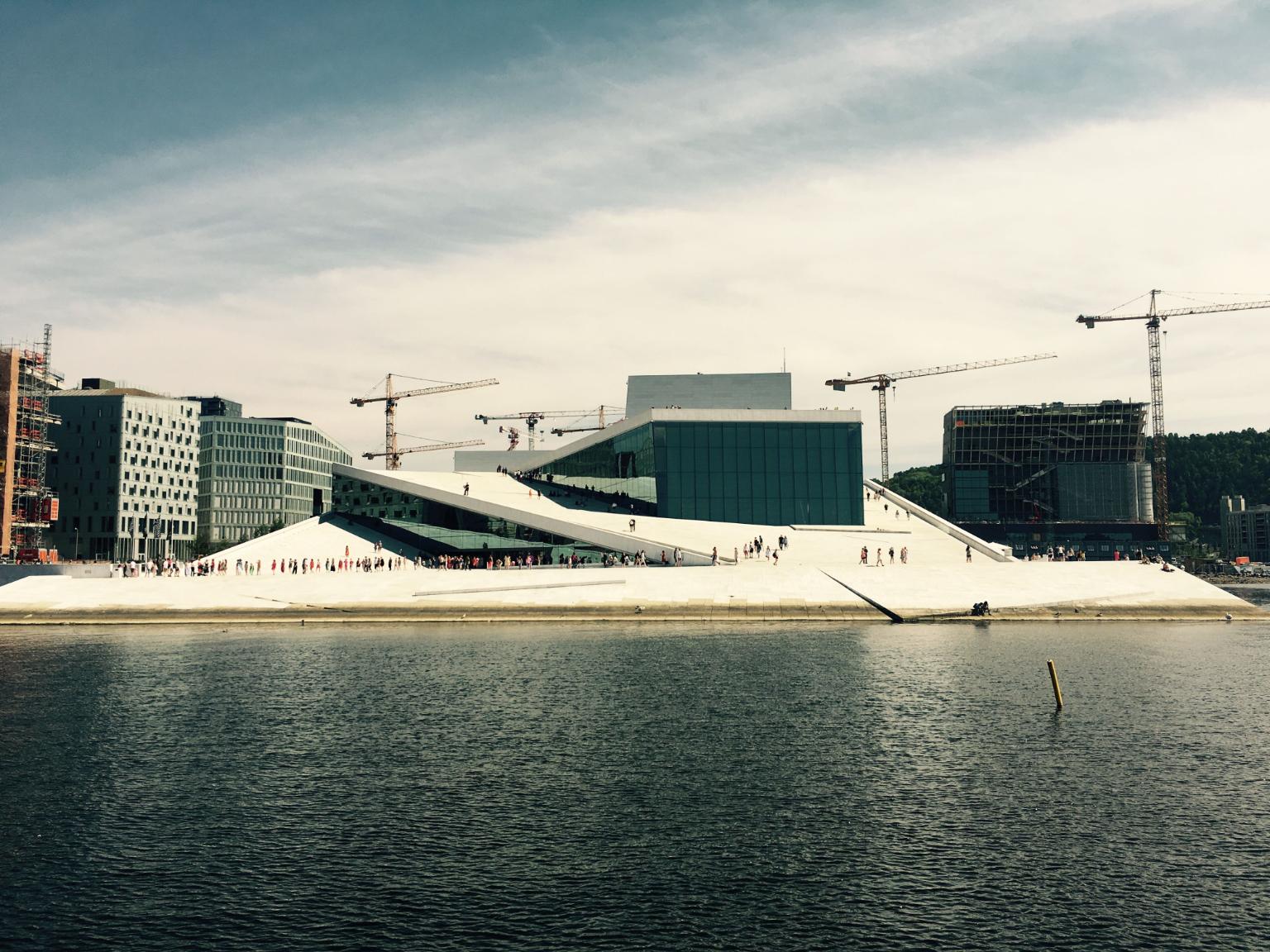 位於挪威首都奧斯陸港灣的歌劇院,受惠於濱海地區再開發的計畫,投資五億歐元耗時五年在2008年完工。大劇場有1,364席,其它兩座小劇場設置了200~
