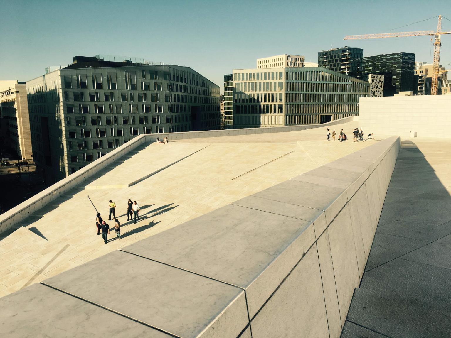 這份極致融入城市的姿態,被定義為一片具有可及性、可親近並可在上頭散步的雕塑。從地面前的這道巨大坡面慢慢往上攀登,越是上到屋頂的高處就越能夠享受到奧斯陸城市街景之變化的樂趣。