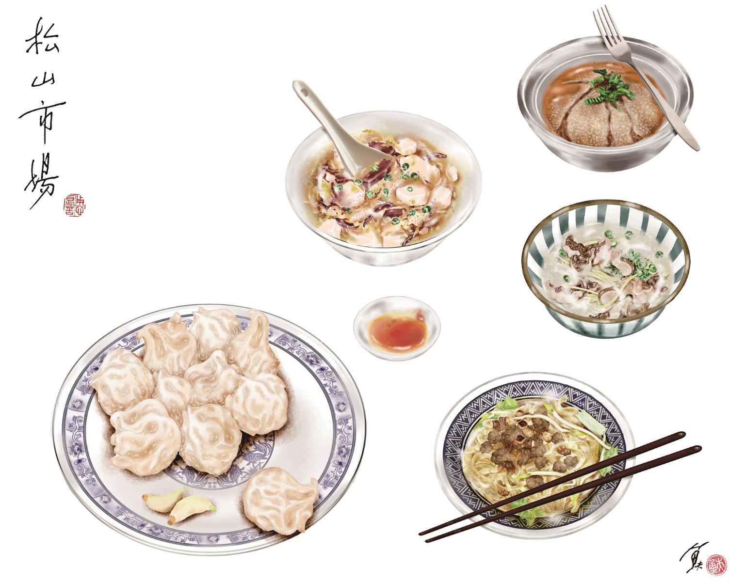 現在的松山市場名氣當然不會超過饒河街夜市,但在經濟部2017年的樂活名攤評鑑中,仍然推薦了「阿布拉小吃店」、「長廊義大利麵」、「源記鮮魚號」和「冠捷小吃」等,其中冠捷小吃的炸肉圓雖然只得到一星,但由於味道香脆,在網路上還算頗有人氣;其次因臨近捷運站出口,所以諸如「祥發烏龍麵」、「現做大眾自助快餐」、「東芳小吃店」、「秀姊小吃店」、「阿甘越南美食」以及「郭家麵店」的麵配肝連湯、黑輪等,也是附近上班族解決午餐的選擇之一,但相信許多人和我一樣,都是為了台北CP值最高的「松山市場水餃」而來,其酸辣湯或福州魚丸都很「四配」,因此下回到饒河街夜市,也請不要忘了松山市場裡這些奮戰不懈的店家,雖然敵不過饒河街的豐盛,不過他們乃以便宜大碗又好吃來吸引顧客!