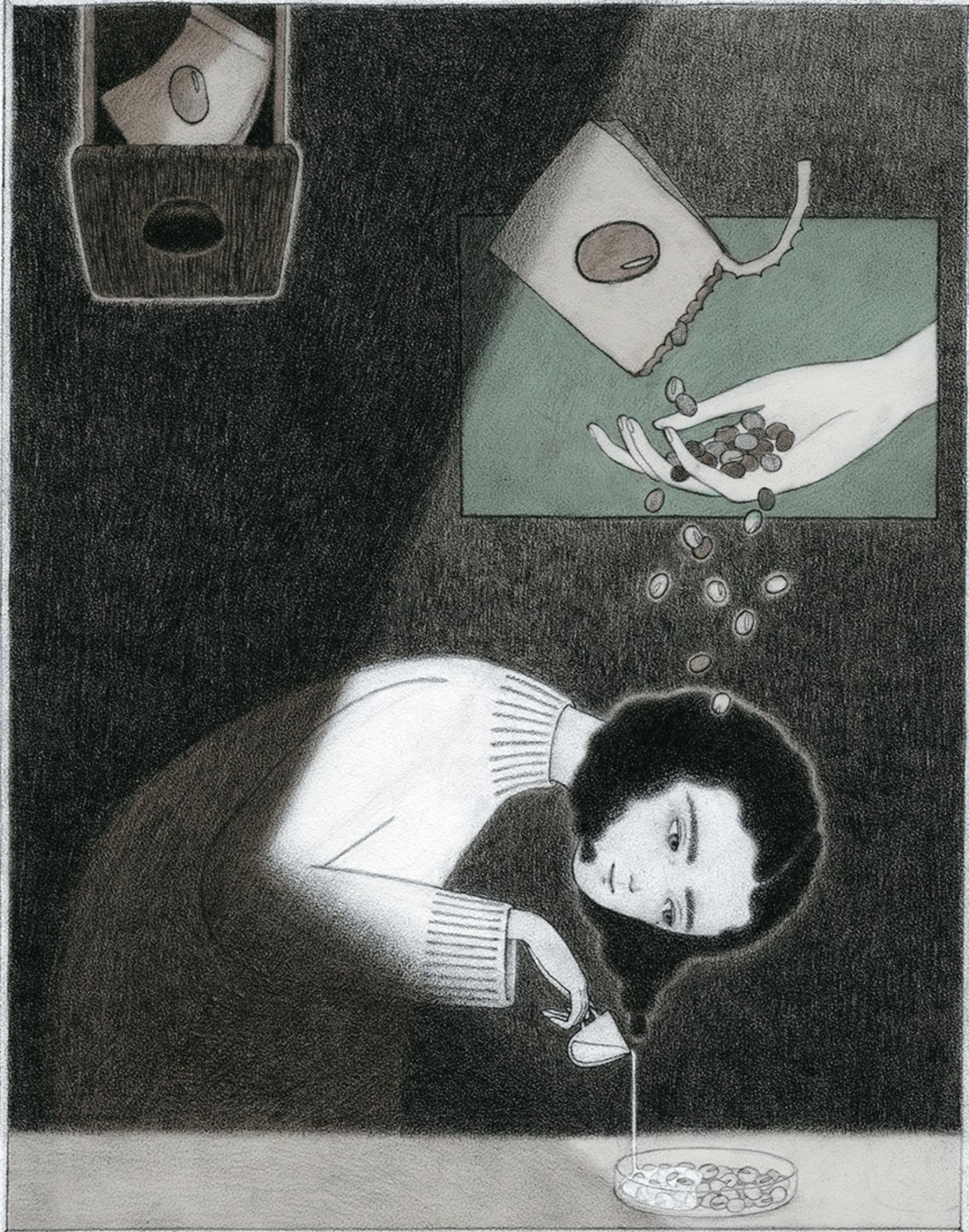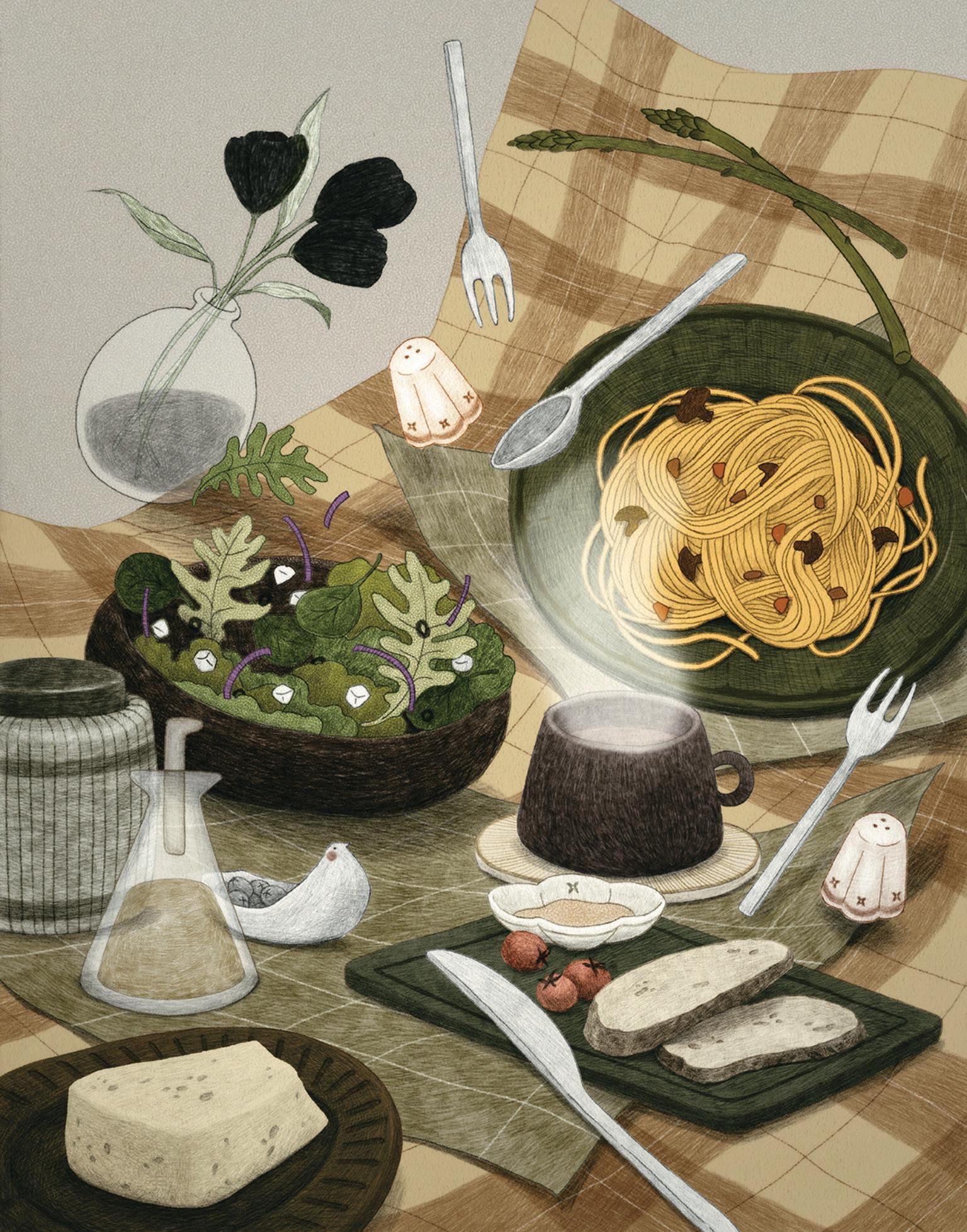 她也發現,喜歡留心生活細節的自己,若欲細膩記物仍會選擇以插畫的方式,尤其長於石墨類的表現技法,對她來說,「筆觸與顏色的堆疊變化,就是情緒的質地,文字無法描述,但能用抽象的方式鋪陳畫面和元素,又不失我想傳遞的核心;保留了空間,讓觀者帶入他們自己的想像。」