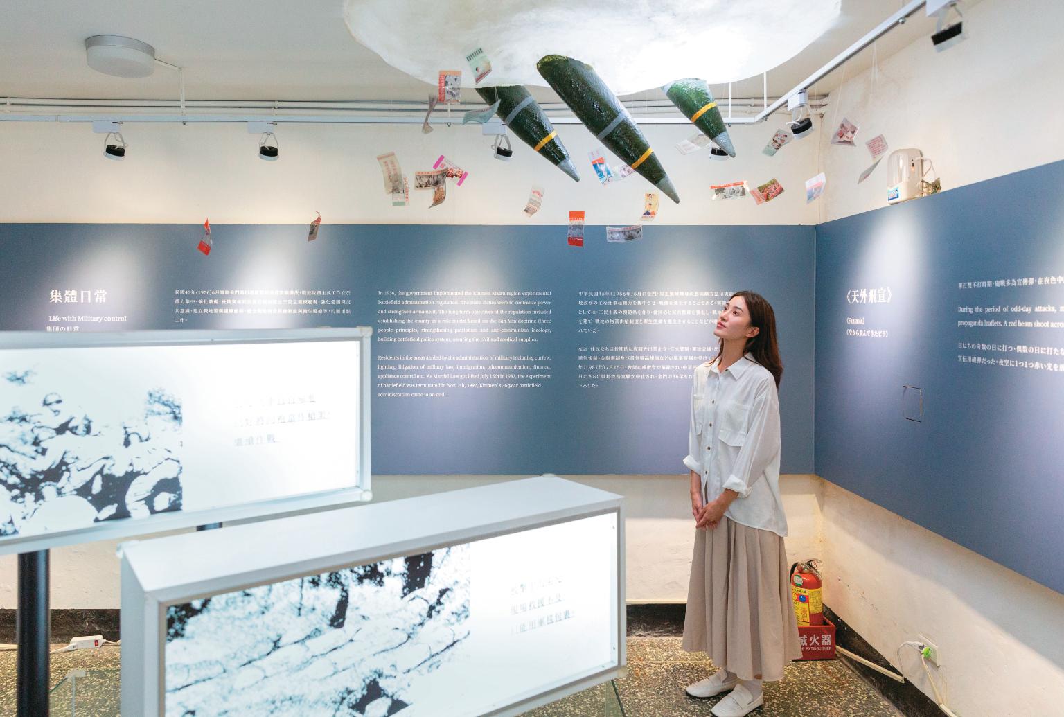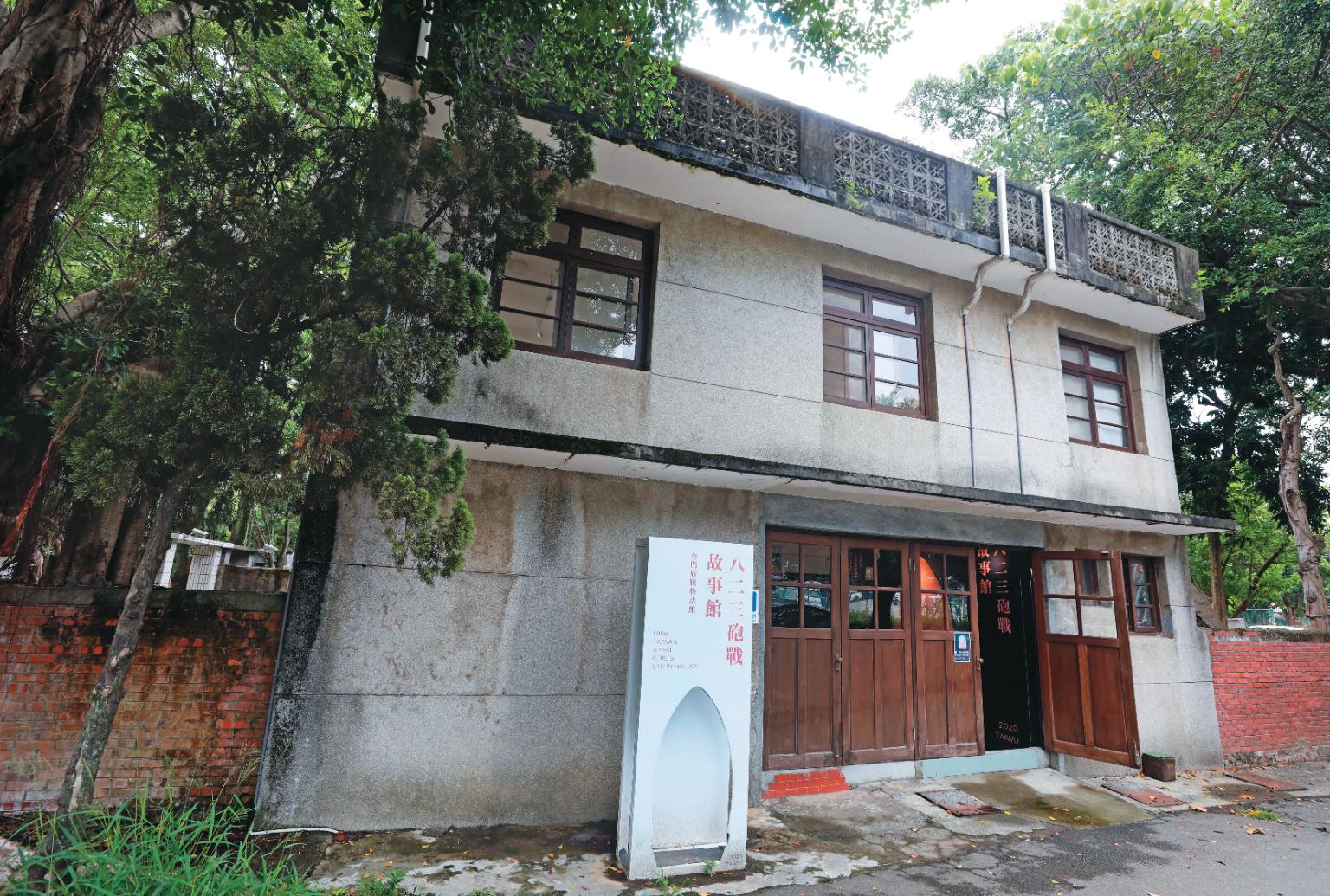 故事館建築是少見的1950年代美式獨棟2層樓格局,設置了綠意盎然的庭園和陽台。故事館以「戰役的歷史時間軸」規劃成不同主題的展間:從第一枚落下的砲彈開始講述,透過擬真的裝置陳設,如天花板一隅是自雲端露頭的砲彈與漫天四散的宣傳單、由軍毯包裹著的捐軀弟兄,就連館內樓梯下方也化身砲聲隆隆的防空洞,讓人遙想戰況之激烈;2樓則可閱讀戰地書信、聆聽播音,感受戰地的烽火日常;展覽最後以眷村生活收尾,展出居民老照片、勳章及家中擺設,以「家」的平和情景吐露對和平的殷切,也希望在當今承平之時,讓眷村歷史、故事及文化於每位參訪者心中留下印記。