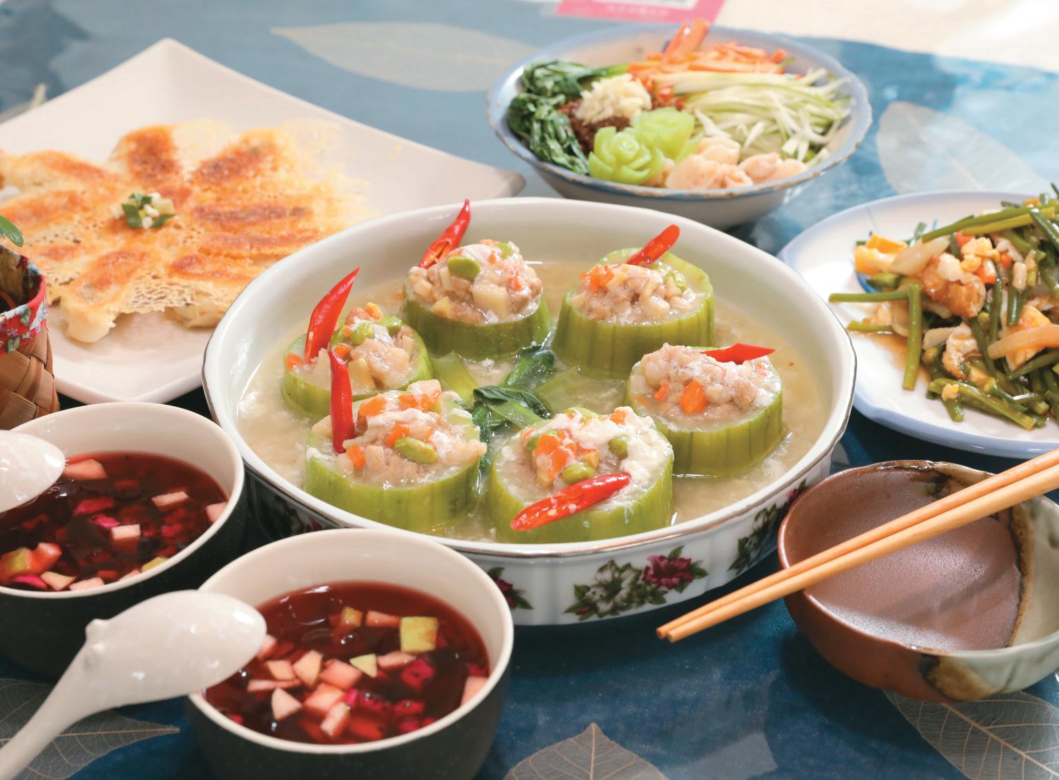 走讀眷村歷史之後,來到同樣由太武新村眷舍改建成的特色餐館「嘻客Takohan Art」。眷村出身的空間主持人魚鰭,選用在地友善農產,於傳統圓桌上豐盛展現創新詮釋的兒時的家常料理。「炸醬紅貓耳」以南興紅藜製作嚼勁十足的手工貓耳朵,拌上費工燉製的鹹香炸醬,是味覺與口感的雙重享受;「自釀味噌冰花煎餃」以歷時1個月釀成的康莊黃豆味噌,為酥脆多汁的煎餃增添一味醇香;另外,清脆的復興竹筍入「絲瓜鑲肉」、中庄韭菜花炒「回鍋蛋」、普洱茶與火龍果巧妙相融的清涼甜湯,均是以新食材、新手法再現眷戶們的共同回憶。