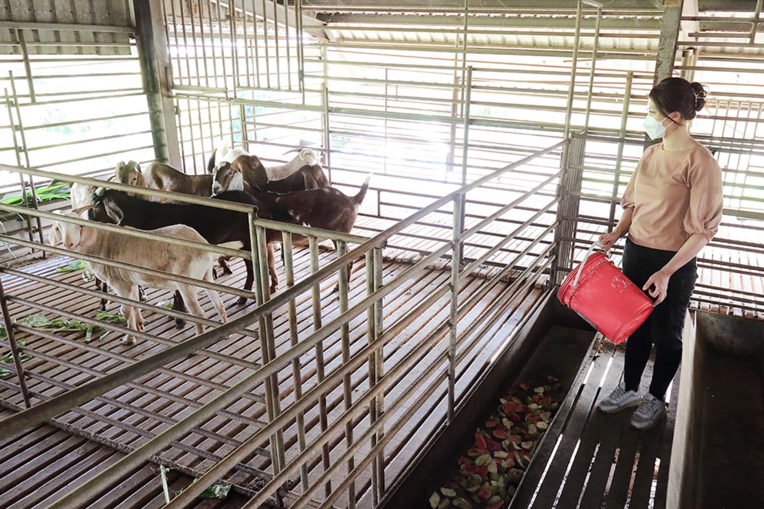 滿福羊肉爐的食材農場離店面不遠,飼養羊場採光通風良好,羊隻抬頭就能看見大崗山,架高木地板讓羊糞直接掉落下層,乾濕分離,環境清爽乾淨,半退休的林秀玉每天依然到羊場打掃、種菜和餵羊。林庭羽分享道:「羊很愛乾淨,也很難搞,牧草掉到地上不吃,被露水沾濕也不吃。」羊場外圍的牧草、香蕉葉、枸杞葉都是羊隻的食物,此外,還能跟著季節變化吃水果,夏天有香蕉、芭樂,冬天有蜜棗,飲食比許多都市人更健康。
