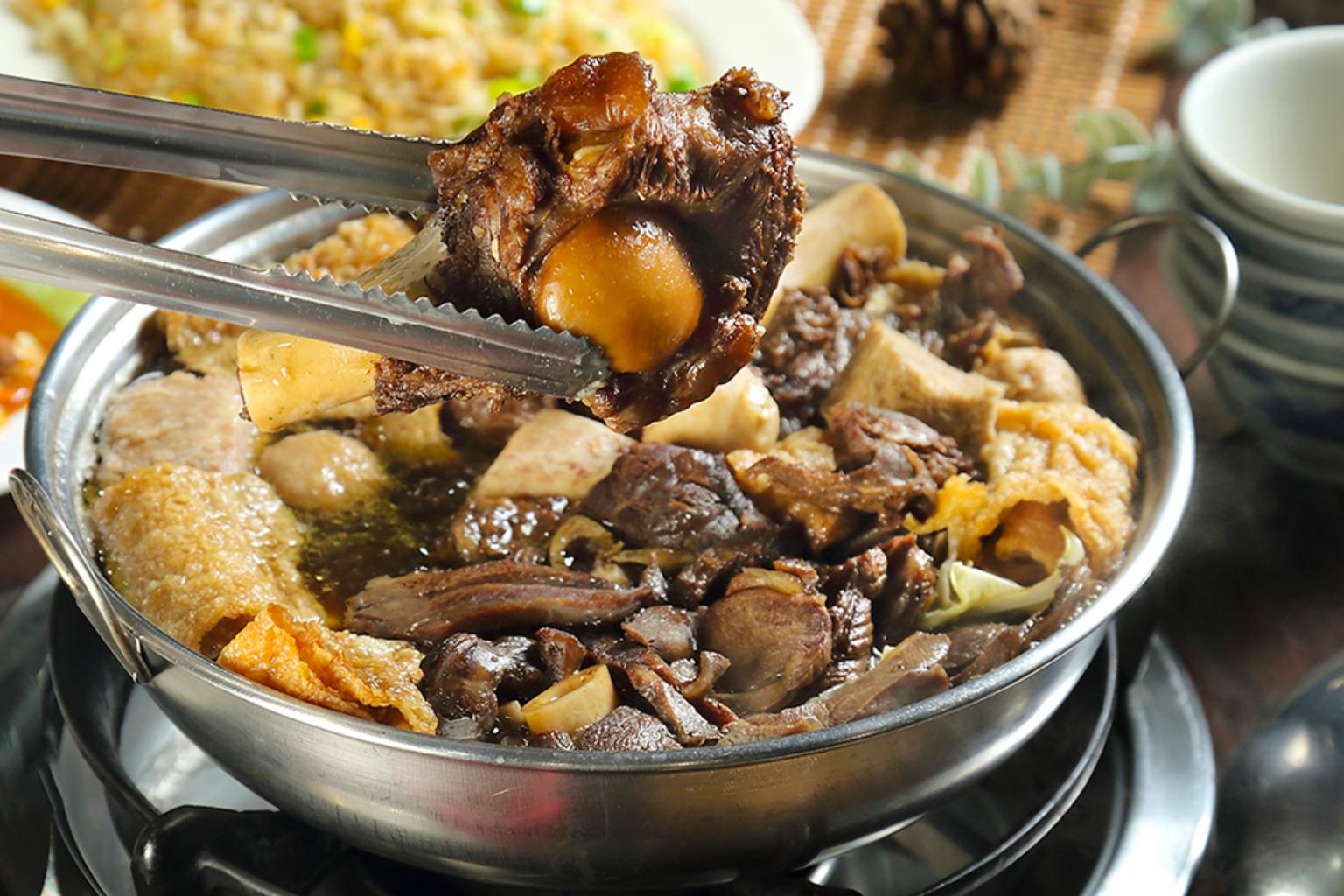 招牌羊肉爐選用進口羊隻,經川燙處理後,以家傳中藥配方燉煮,溫和的藥材香氣取代羊羶味,在入冬微涼的夜色裡,嗅覺已搶先感受到溫暖療癒。迫不及待嚐一口琥珀色湯液,那甘甜香醇的秘密來自甘蔗,楊老闆不藏私的補充:「加入甘蔗熬煮,才有一定程度的香氣和甜度。」每日清晨開始熬湯,前置作業加上3至4小時的燉煮,為的就是下午能得到一大鍋限量供應的精華。