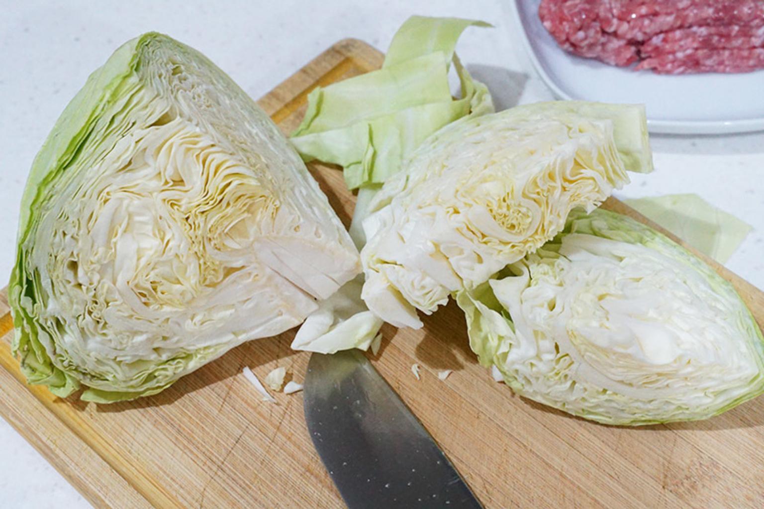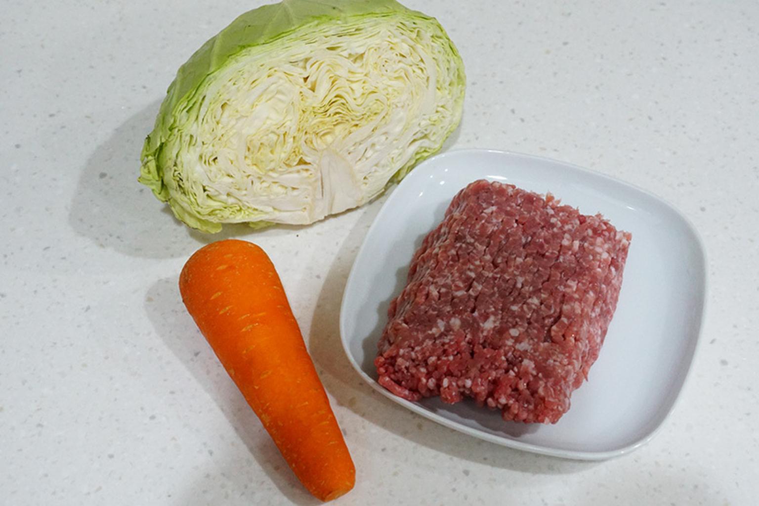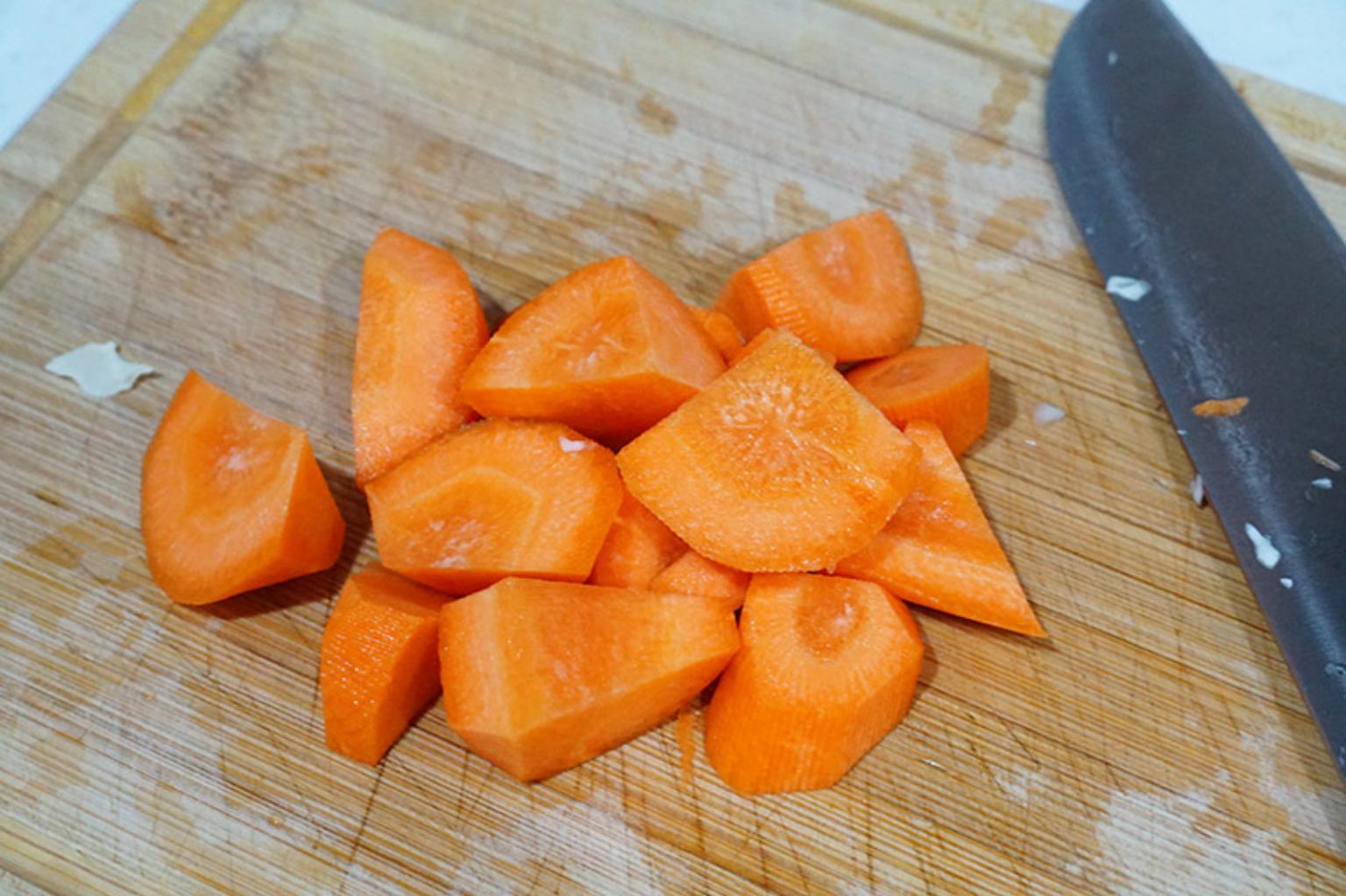 備料部分將高麗菜切開洗淨,胡蘿蔔滾刀切適當大小。燉煮類的都建議只用滾刀切法。