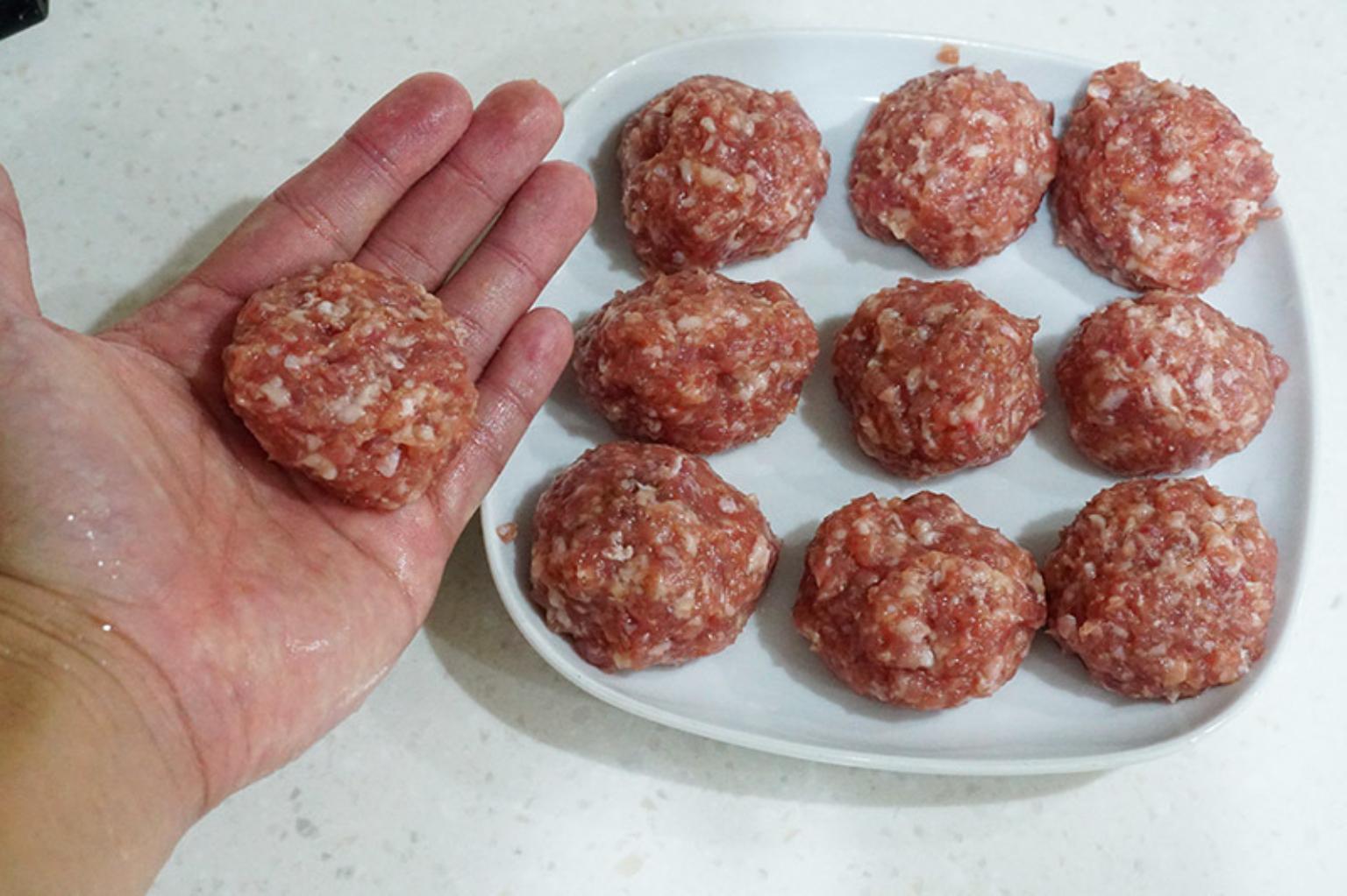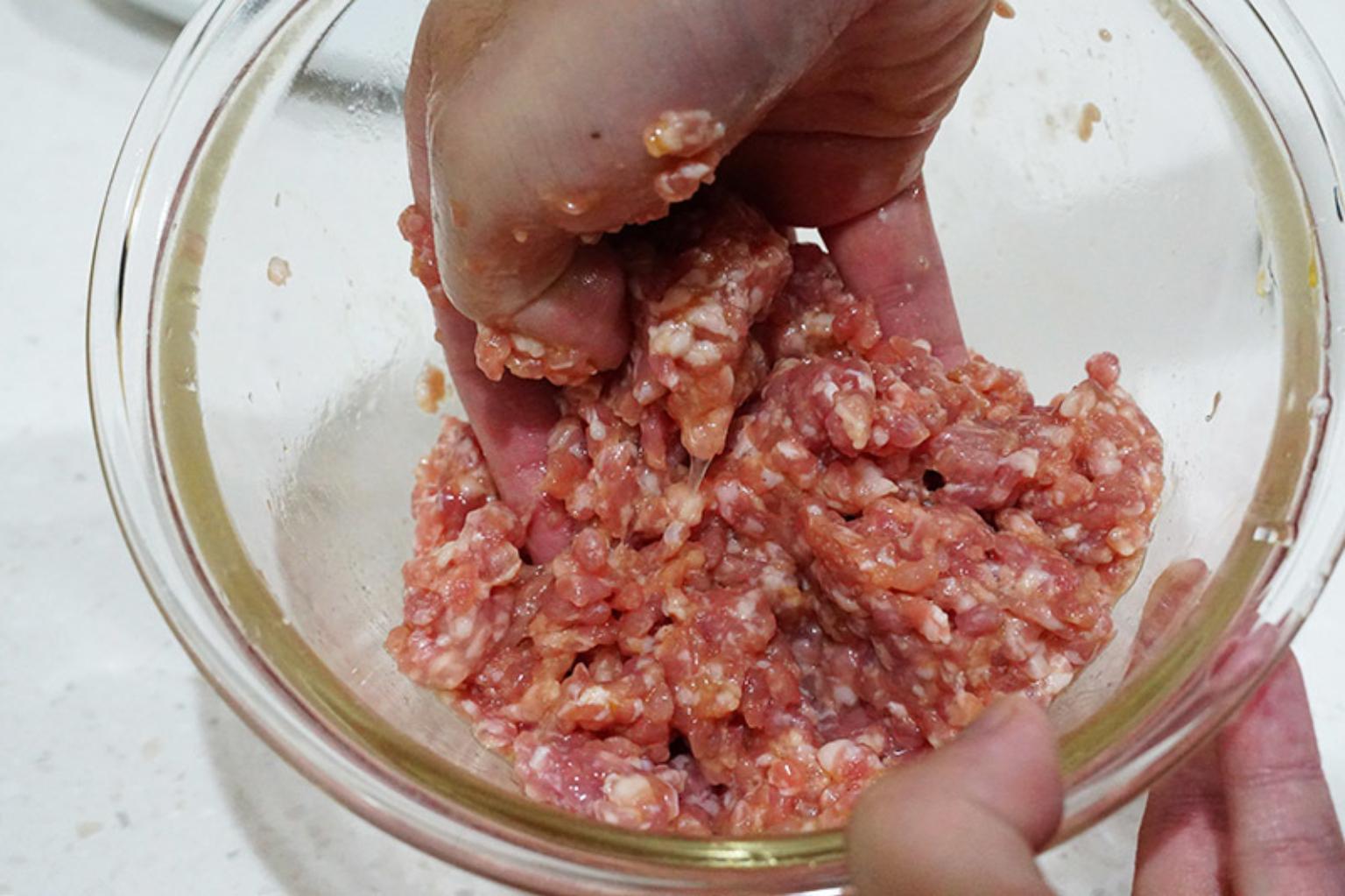 充分混合均勻後,搓揉成一顆一顆的肉丸子。製作肉丸子的時候,可以在手掌間來回拍打丟擲,拍出空氣。這樣做可以避免滷煮時肉丸散開。