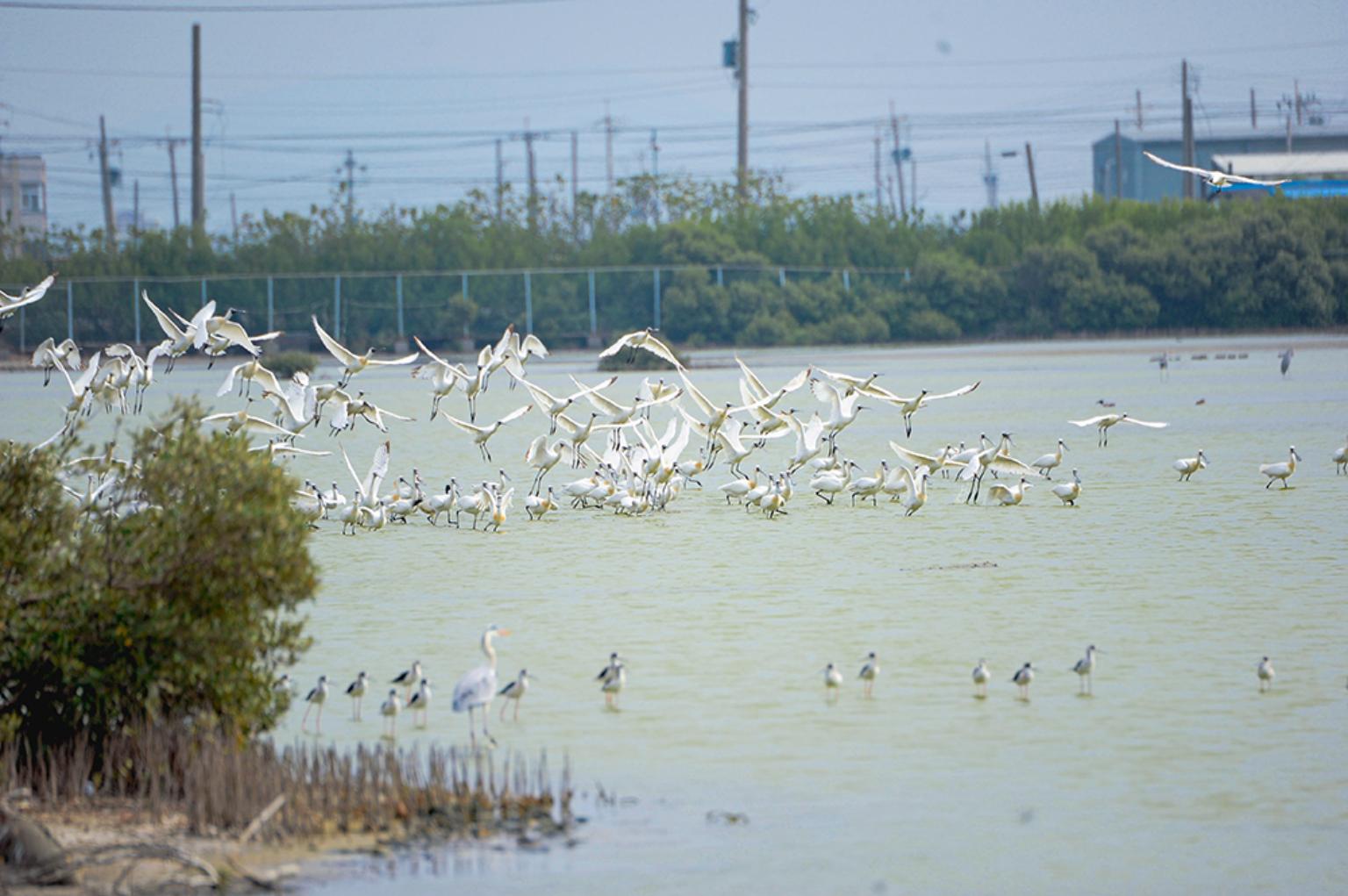 永安濕地是知名的鳥類棲地,據統計約有110種鳥類在此棲息或度冬,包括小型鷸科、鴴科鳥類等,以及從西伯利亞遠道而來的紫鷺,而每年10月到4月,黑面長喙、身穿白羽衣的黑面琵鷺來會飛來永安濕地與周遭鹽田、灘地棲息。騎行在海岸道路,不時可看到黑面琵鷺家族的身影,彷彿與鳥兒比肩飛馳,心情也跟著飛揚雀躍。