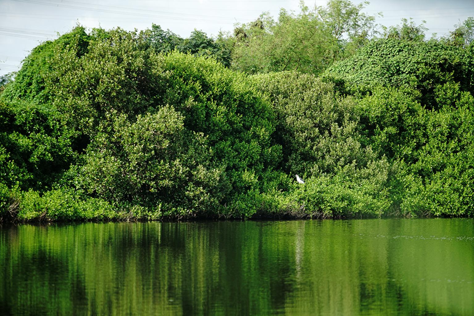 來到永安,眼前是一馬平川的海岸濕地,鹽田、魚塭以及寧靜漁村屋舍,組成恬靜安詳的漁村風光。海茄苳和欖李在陽光下微微搖曳,水鳥,螃蟹、彈塗魚等潮間帶生物棲息覓食,豐富生態值得細細探索。