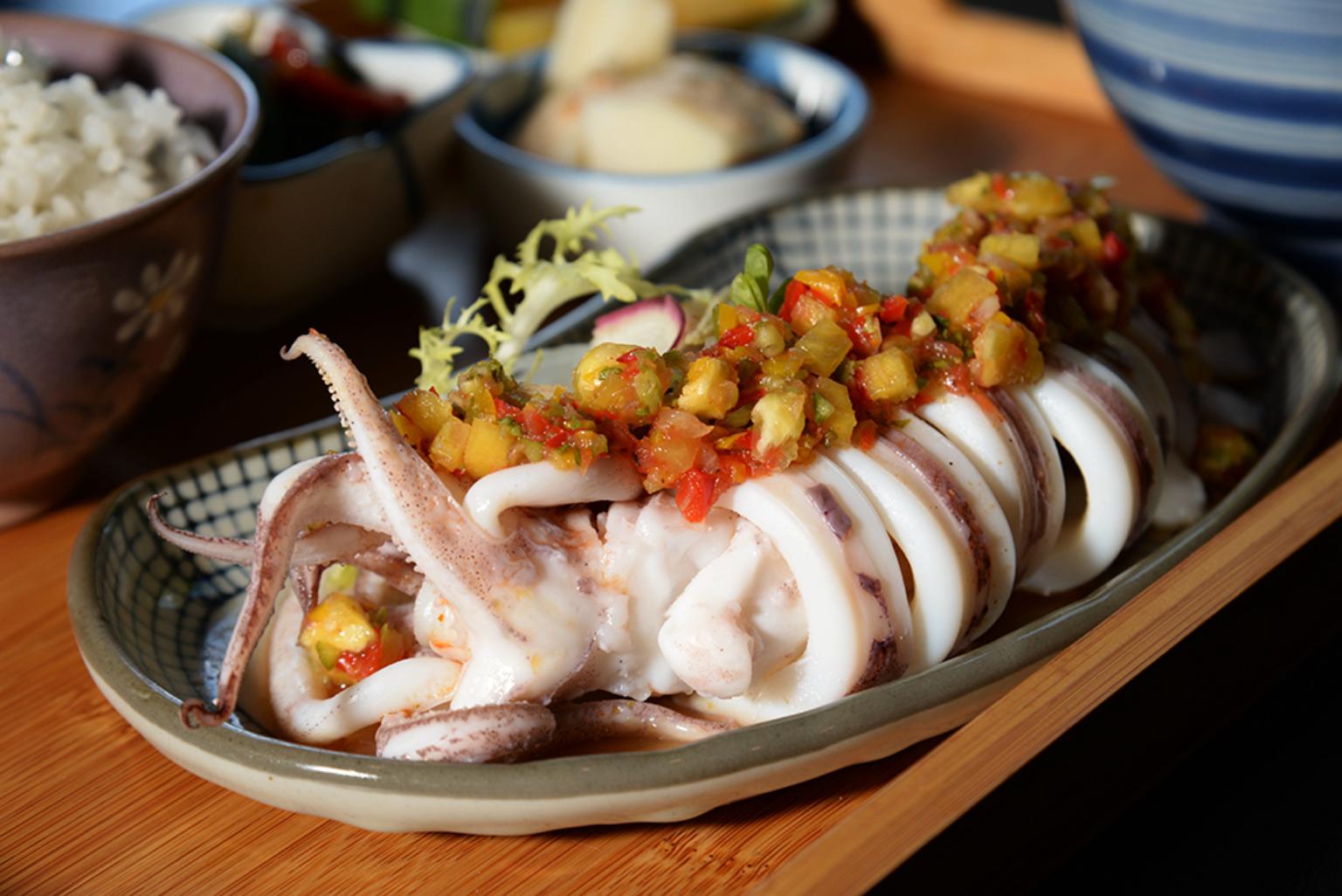 充滿藝術氣息的意滿漁景觀餐廳位於蚵仔寮海邊,寬廣庭院海景一覽無遺。店內使用在地精選食材,製作如廣福黑豆紅棗茶、苗栗杭菊枸杞茶、醃漬甲仙梅等風味飲品,以及使用當地鮮魚食材製作的定食。使用東石虱目魚香烤後,加上自製鹹檸檬提鮮的「鹹檸檬烤虱目魚佐蛤蜊鮮蔬」,還有在莎莎醬中加入鳳梨,引出中卷鮮甜的「旺來莎莎清燙中卷」,活用在地食材發展的創意料理,帶給味蕾全新體驗。