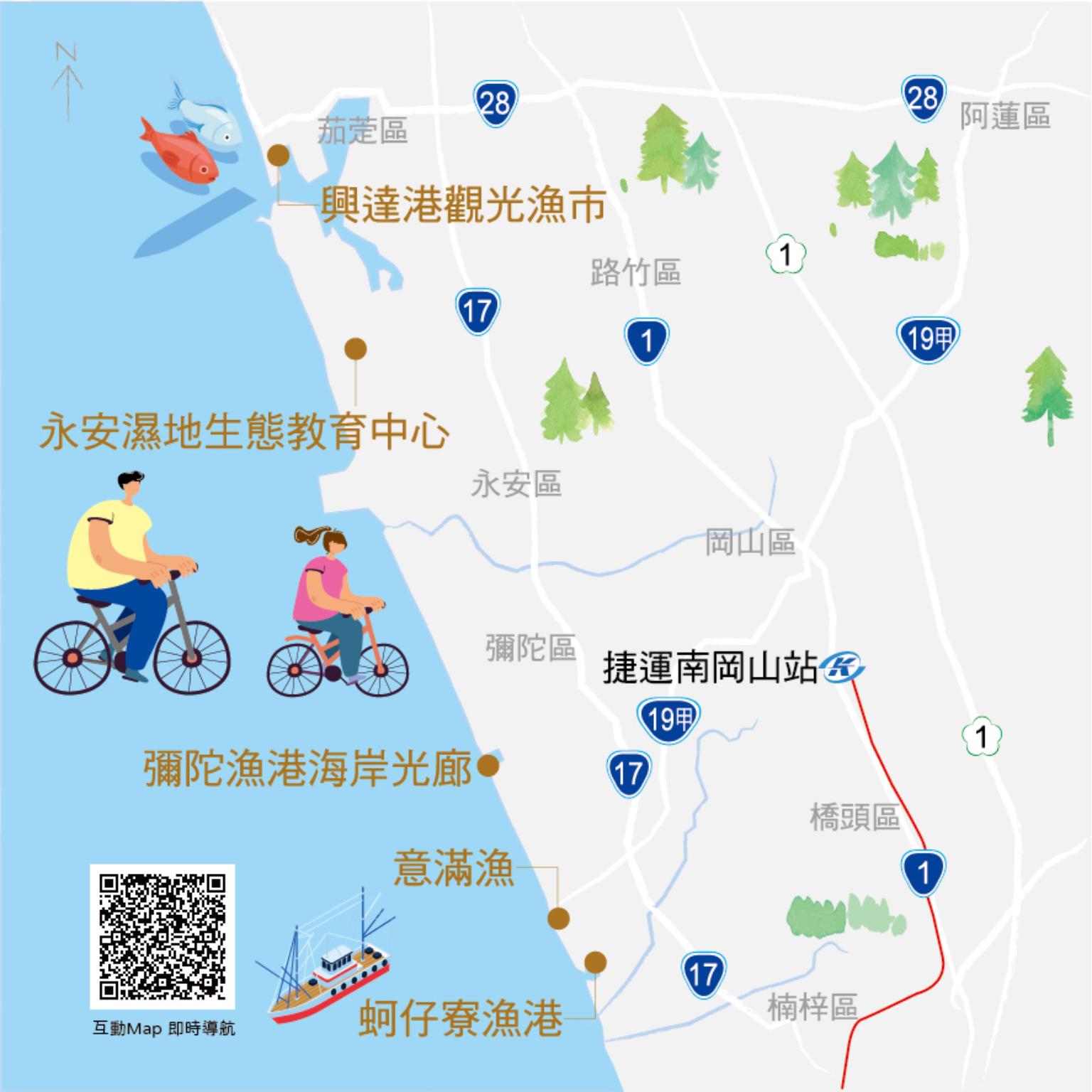 以美拍勝地興達港為出發點,沿著海岸道路輕鬆騎行在平坦舒適的自行車道,拜訪與海洋零距離的彌陀海岸光廊,最後以蚵仔寮海鮮完美收尾,一望無際的藍色海洋相伴在旁,從白天的明媚陽光,到夕陽時分的金色浪漫全部盡收眼底,邊走邊吃享受無拘無束的單人私旅行。