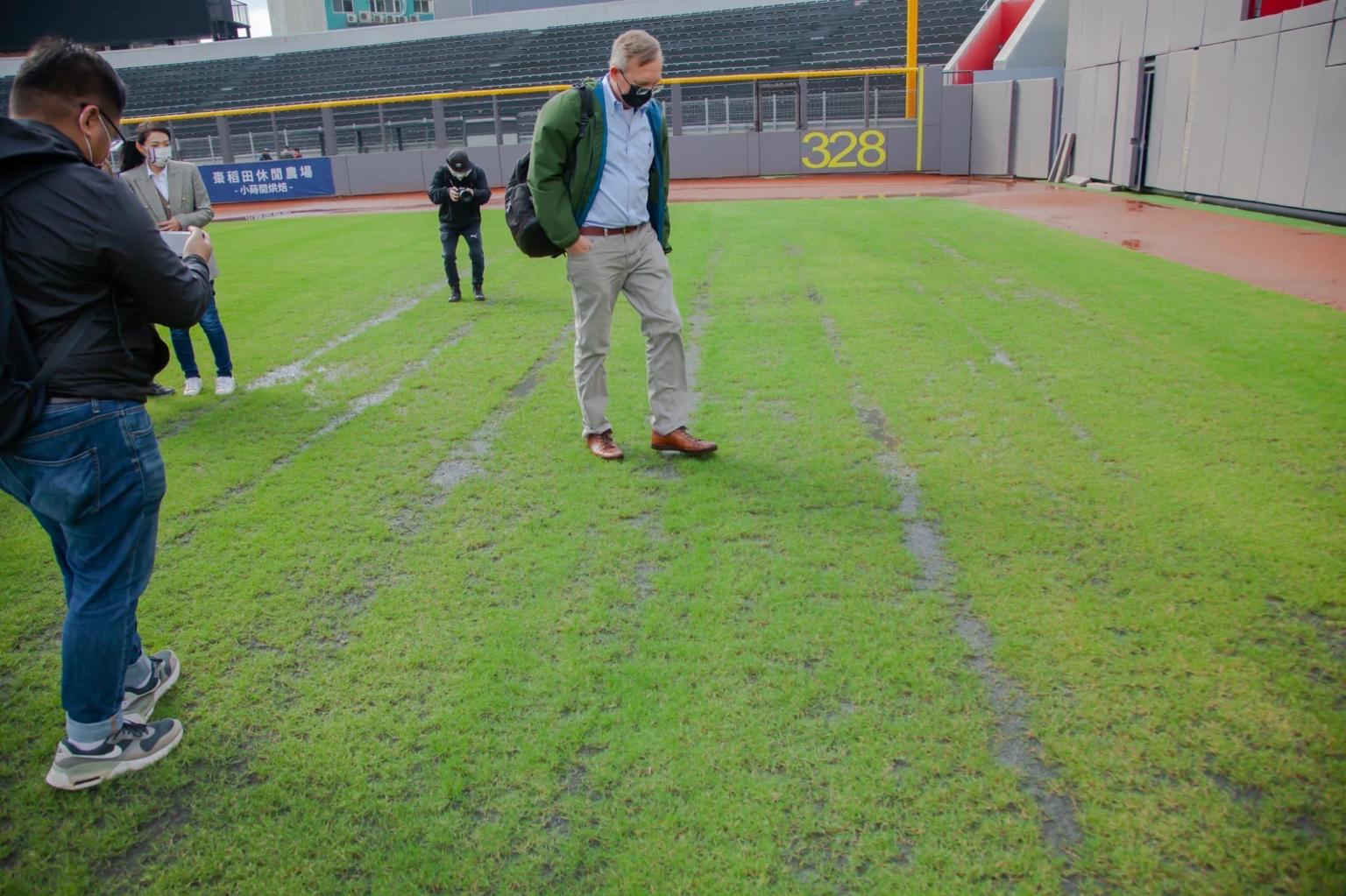 高虹安曾邀請美國職棒大聯盟(MLB)專家於去年12月14日來台場勘,結果不但草皮出現條狀間隙,經灑水20到25分鐘,即出現嚴重積水情形,當時MLB人員就取回土壤化驗。