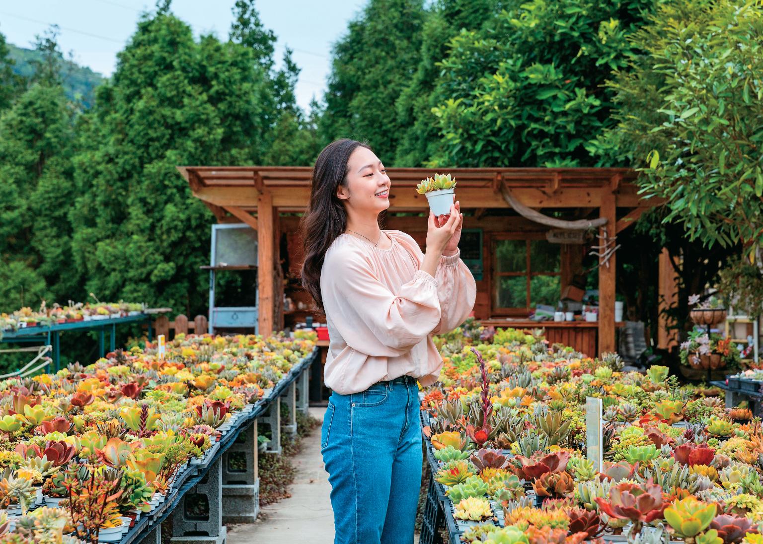 三和青創基地為了創造吸引旅人駐足的發信平台,以綠建築概念改造一座逾40年的老舊雞舍,一側設立食堂「繞山花」,客語意象為「遊山玩水」,取材在地小農蔬果及客家飲食元素入菜,佐以地產紅玉紅茶和地方職人手烘咖啡,將三和的山水精華化作一道道餐食,另一側作為互動教室,提供多肉盆栽、生態花藝等手作體驗,偶有製作客家紅粄、聖誕花圈等季節限定課程。而戶外露天廣場是多肉植物園「Koi Garden」的所在,上千種多肉繽紛排開,令人目不睱給。若時間允許,不妨一併遊覽周邊景點,像是採摘砂糖橘、火龍果或觀賞錦鯉,讓五感細品屬於在地的鄉土生活,感受返璞歸真的迷人風采。