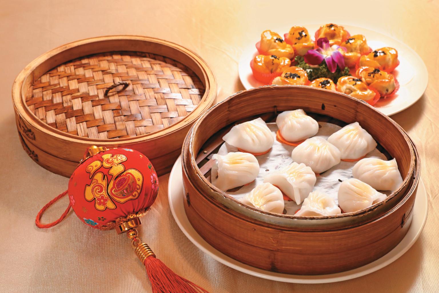 最後上桌的是港點組合「精緻美雙點」,「圓籠蒸蝦餃」以Q勁剔透的餃皮,填入彈牙多汁的滿滿蝦肉,一口咬下盡享無窮的絕妙口感;還有福容大飯店每年都不缺席的「元寶酥」,使用冬瓜糖炒出綿軟蓮蓉,裹上酥香的千層派皮,以豐富層次與甜而不膩的口感為除夕圍爐完滿作結,也為新的一年致上喜悅祝福。