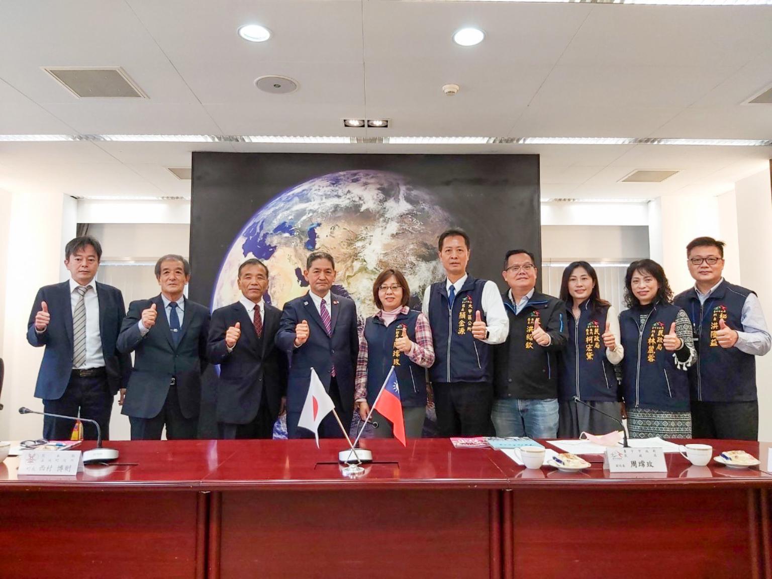 昨日締盟儀式,市議員李文傑、楊啓邦出席與會,歡迎遠道而來的日本貴客,另駐福岡辦事處長陳銘俊也跨海透過視訊見證表達祝福之意,並期許雙方擴大多元交流與合作。