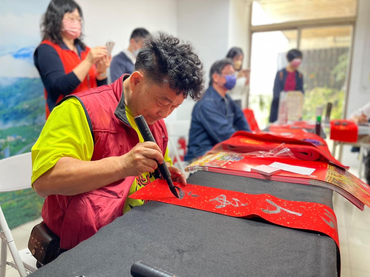 移民署嘉義市服務站主任黃艷薰說,為讓新住民體驗農曆年節傳統習俗,因此跨機關合辦揮毫活動。現場有來自秘魯、越南及菲律賓的新住民朋友們參加,並以母語寫春聯,呈現豐富多元文化風情。嘉義市政府民政處處長劉美鳳表示,活動邀請的書法家申婷頡為大陸新住民,也是嘉義媳婦,不僅寫的一手好字,亦擅長繪畫插圖,這次結合兔子圖案的文創春聯便是她的作品。