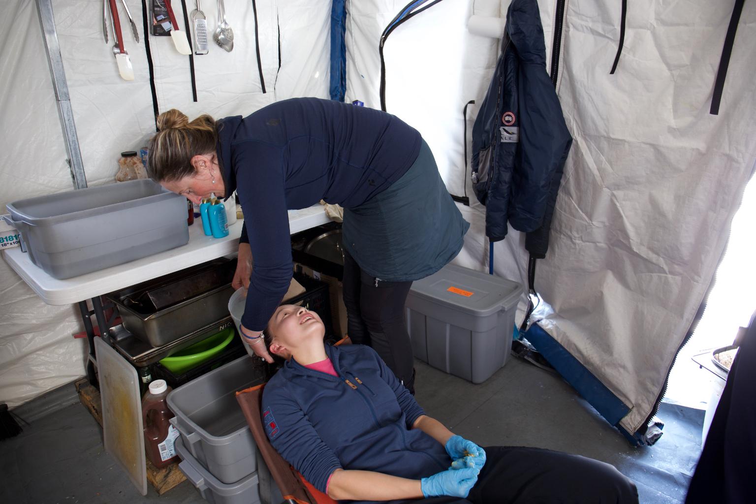 在氣候方面南極更是嚴苛,他在北極21天只有3、4天碰到暴風雪,但在南極是只有3、4天沒有暴風雪,更別提在北極受傷、需要醫療,飛機可緊急落地,但在南極幾乎是不可能的事。