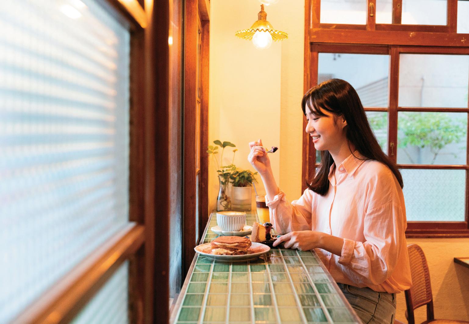 走讀書店之旅後,穿越時空來到瀰漫著復古氛圍的城市一角,享受融合當代滋味的手工甜品。座落街角的「拾午」,店主Vivi以古早台灣元素為題,活化一棟1960年代建成的老屋,深邃木色與鵝黃燈光將懷舊氛圍渲染極致,因此拾午不僅是年輕人打卡拍照的熱點,也是備受長輩喜愛的聚會之地。