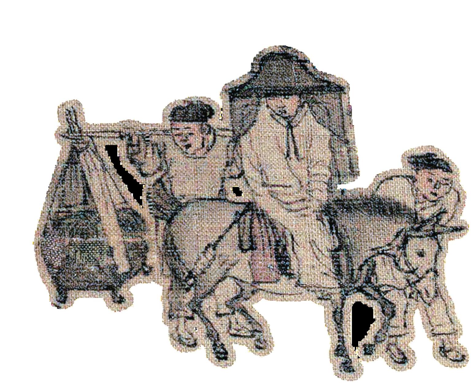 注:界筆是一種特別的畫筆,有一個圓形筆套,作畫的時候,將毛筆放在筆套裡,只露出毛筆的毫尖,然後將筆套靠在直尺上移動,這樣就能畫出又勻又直的墨線了。如果想畫粗一點的線條,就讓毫尖露出長一點,反之,就露出短一點。為什麼要用界筆作畫呢?這是為了更加精確、寫實地畫出建築、家具、舟車等。