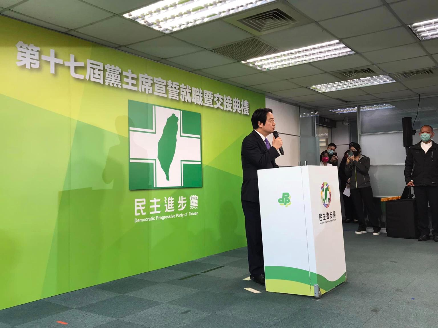 副總統賴清德今日自代理主席陳其邁手中,接下民進黨主席印信。賴在致詞與答覆媒體詢問時,兩度解釋務實台獨工作者主張,強調台灣已經是主權獨立國家,沒有再宣布台灣獨立的必要,未來仍會延續總統蔡英文「四個堅持」的兩岸路線,他並會嚴謹討論和提出未來台灣的願景藍圖。