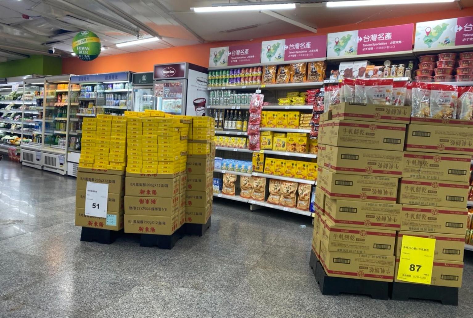 這家家樂福最暢銷的東西,就是放在最靠近門口的鳳梨酥,筆者目視,韓國觀光客常常一個人就能帶走10盒,一家人來逛就是帶走20、30盒,店家乾脆把鳳梨酥放在門口,一波觀光客過境,馬上銷售一空。