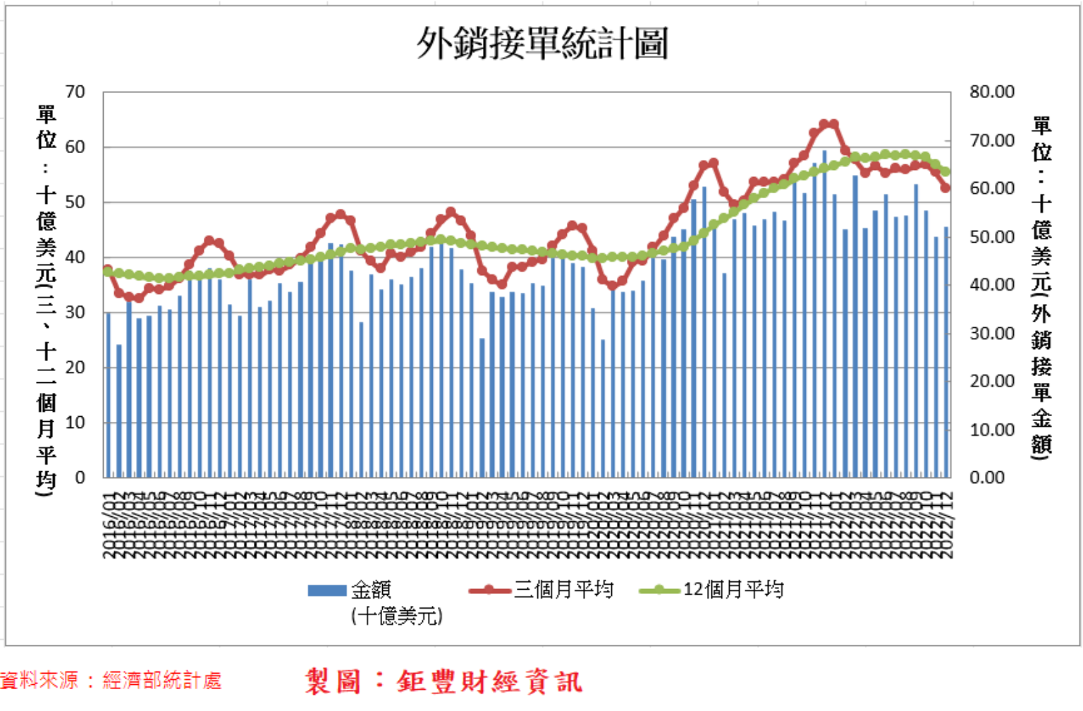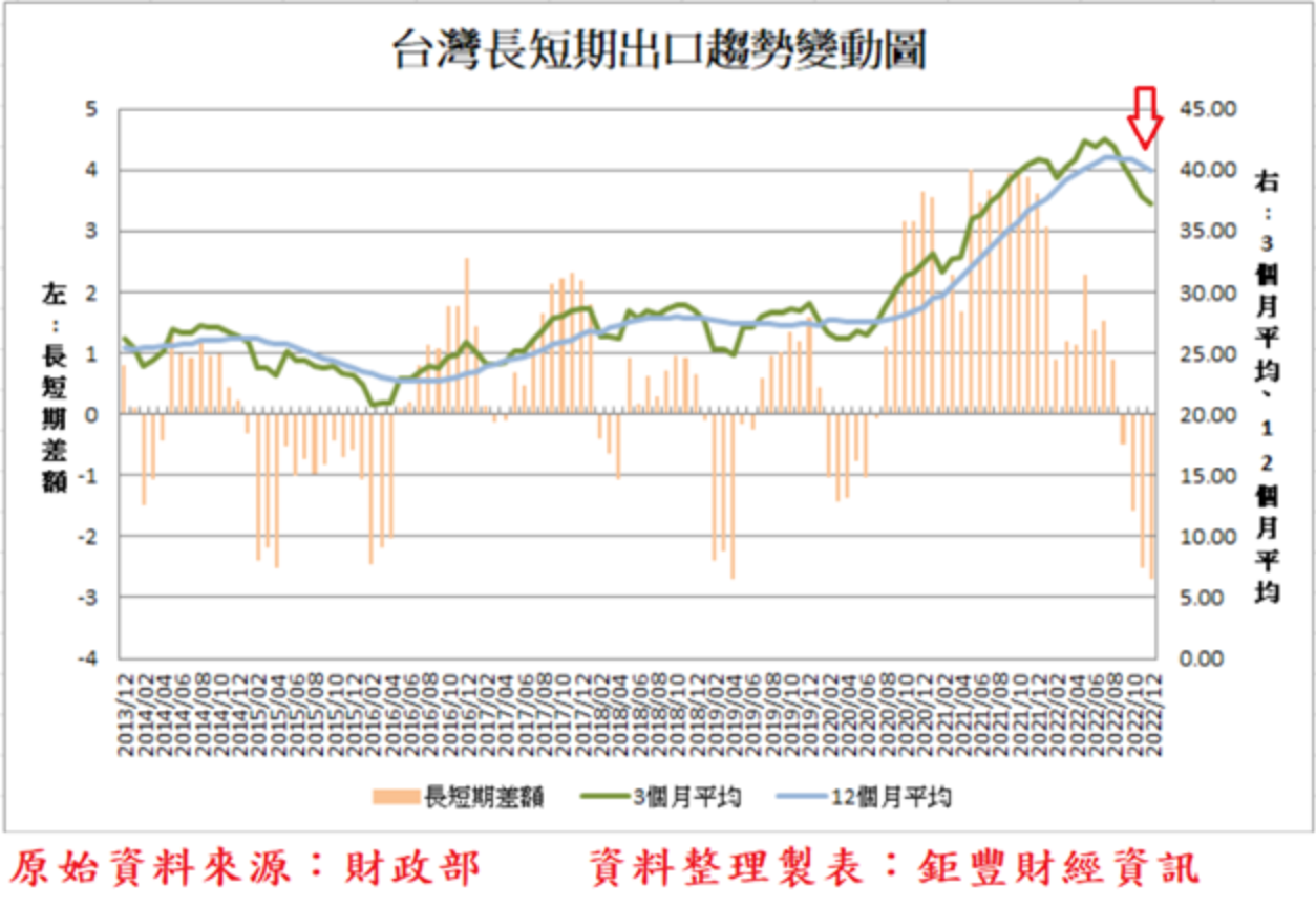 受國際經濟下行衝擊,我國對外貿易總體經濟數據持續惡化。台灣繼單月出口年增率連續4個月轉為負成長後,元月下旬公告的2022年12月外銷接單年增率亦呈現連續4個月負成長,顯示全球重要經濟體總體經濟持續下行,已對我國對外出口及接單造成嚴重衝擊,預期2023年上半年對外出口可能面臨更嚴峻的考驗。