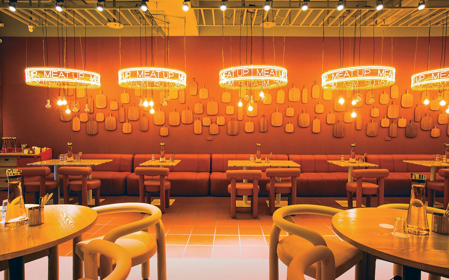 Meat Up覓晌以沉浸式裝潢實現來客用一個下午遊歷各國的願望,身兼店裡品牌總監與美食旅遊部落客的Regina,以旅遊多國的經驗,將餐廳打造成充滿驚喜的空間,從入口處就得Set好拍照模式,直到用餐完畢或許都還拍得意猶未盡。