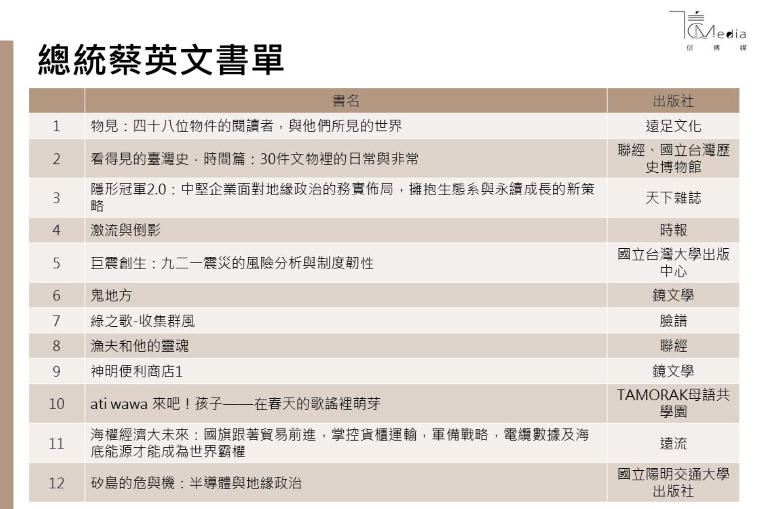 歷史、文學、藝術及漫畫要看哪一本?總統都幫你挑好了
