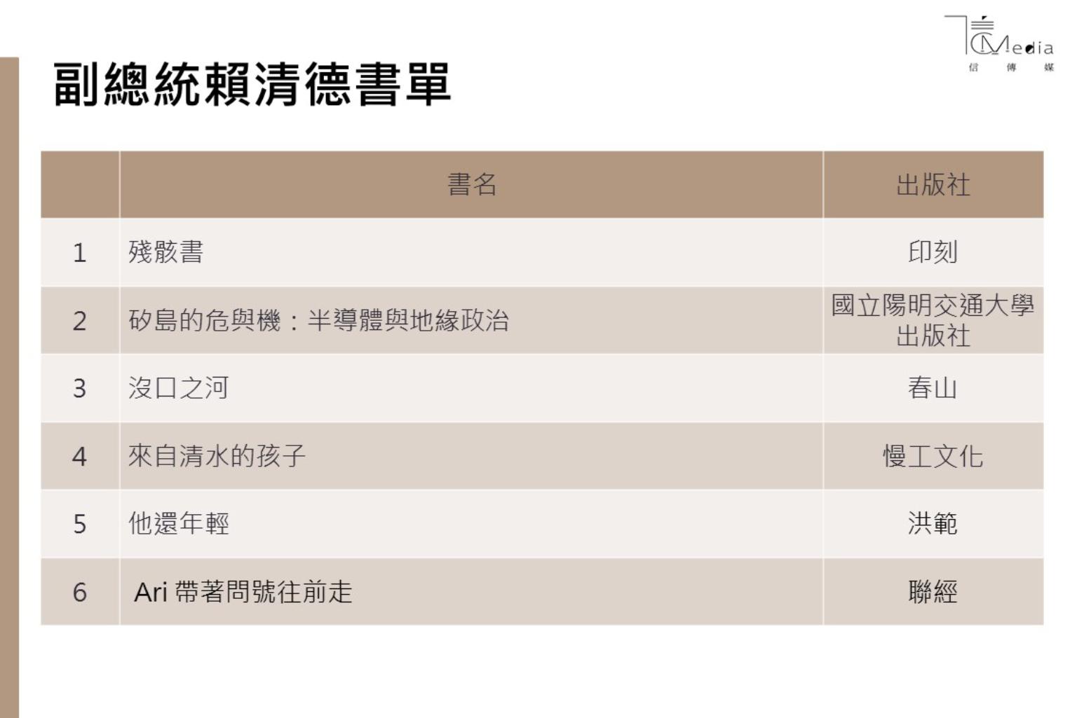 值得注意的是,在副總統賴清德的書單推薦中,同樣推薦了《矽島的危與機》。